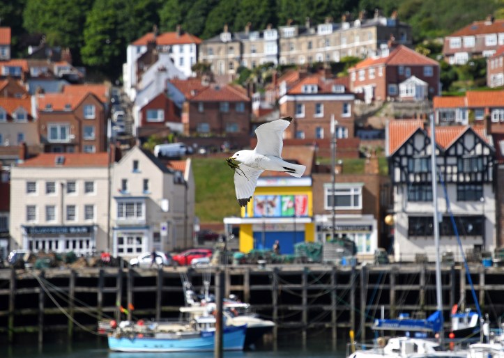 There has been a constant stream of kittiwakes flying to and fro between their nests and the harbour at low tide. They come to collect mud and seaweed, and travel back to their nests, both in the town and on the cliffs, carrying their precious cargoes.