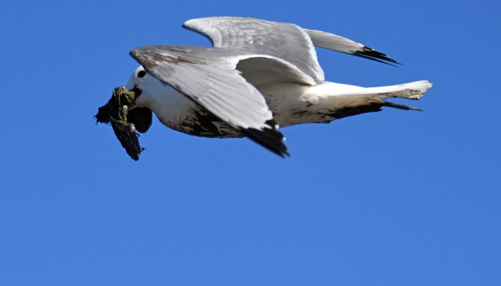Some birds are rather optimistic in terms of what they can carry, and some of these heavier loads get dropped, so the odd little patches of seaweed are appearing on the roads and pavements near the harbour and on Marine drive.