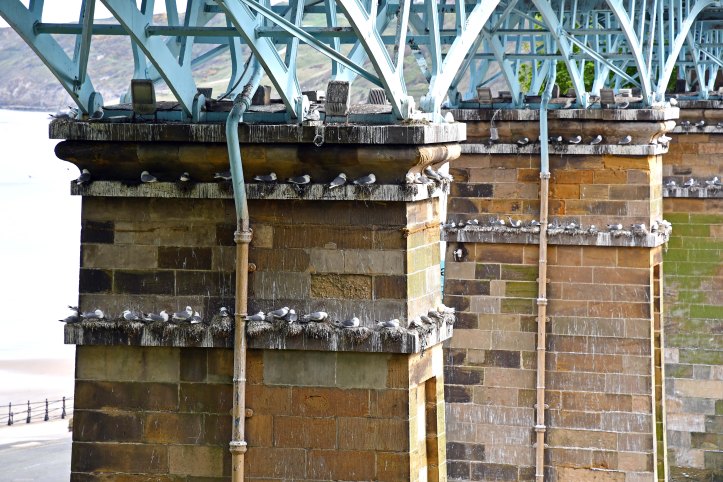 Some of the kittiwakes gathering nesting material in the harbour took off and headed back to the town, particularly to the Valley Bridge, where many hundreds nest. Safe and sound above the road below!