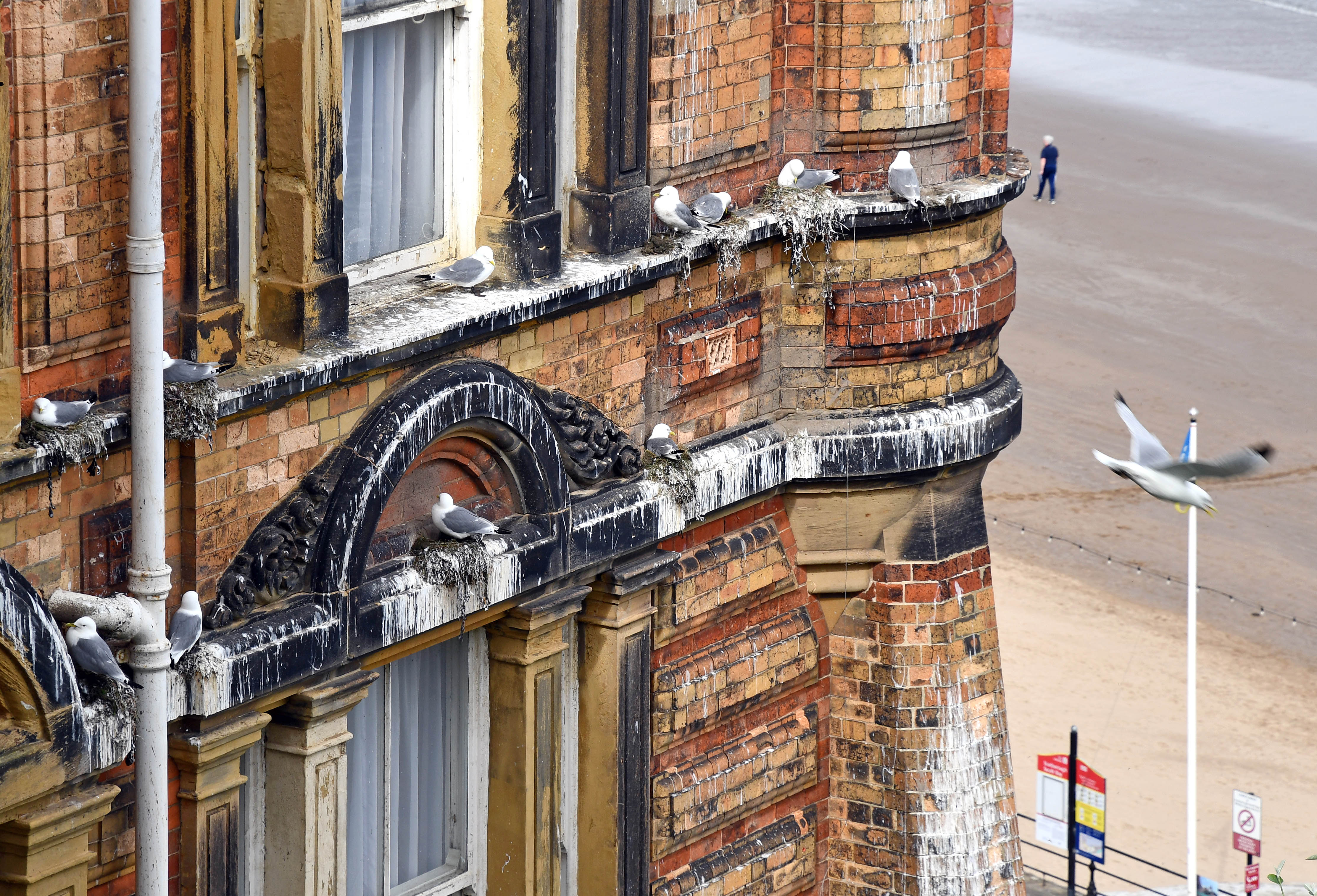 Black-legged kittiwake (Rissa tridactyla) on the Grand Hotel 17 May 2020. Scarborough