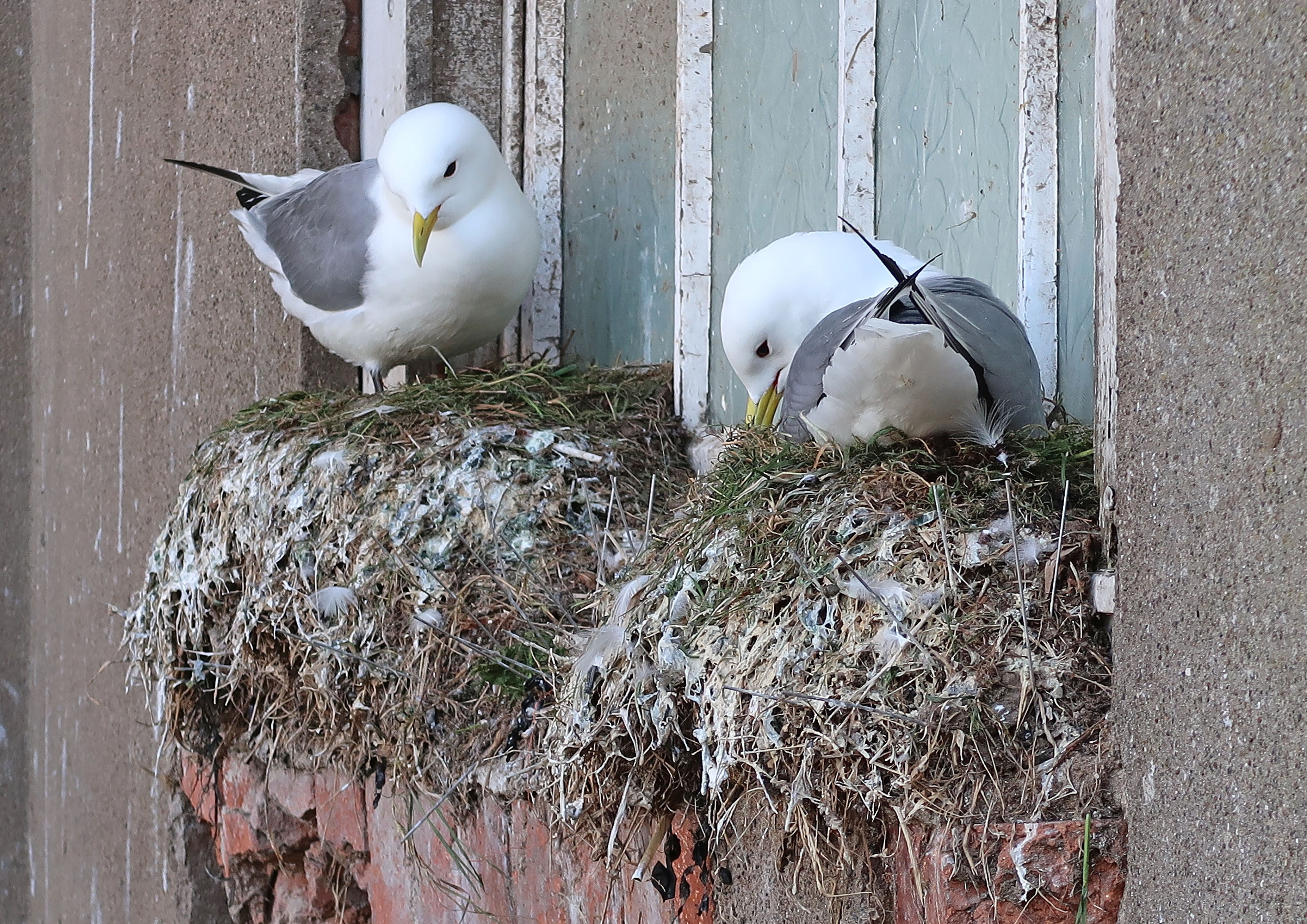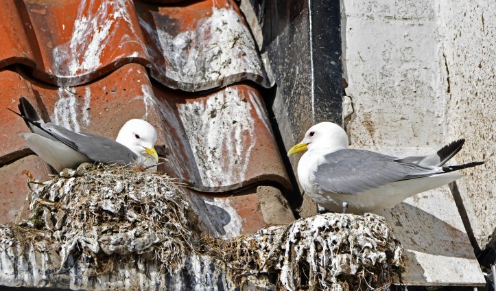Over the last few weeks, kittiwakes – or Black-legged Kittiwakes (Rissa tridactyla) to give them their full name – have been very busy building their nests here in Scarborough, north Yorkshire.