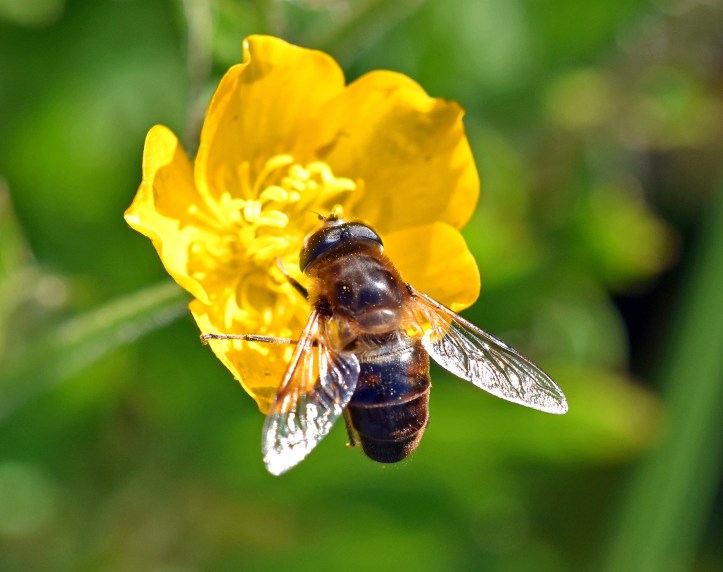 Plodding a regular path near my home, I have been enjoying the emergence of buttercups over the past few weeks. Ever alert to possibility of photographing insects, I have been going around peering into their shiny yellow flowers, to see what I could find. At least I was when the sun was out!