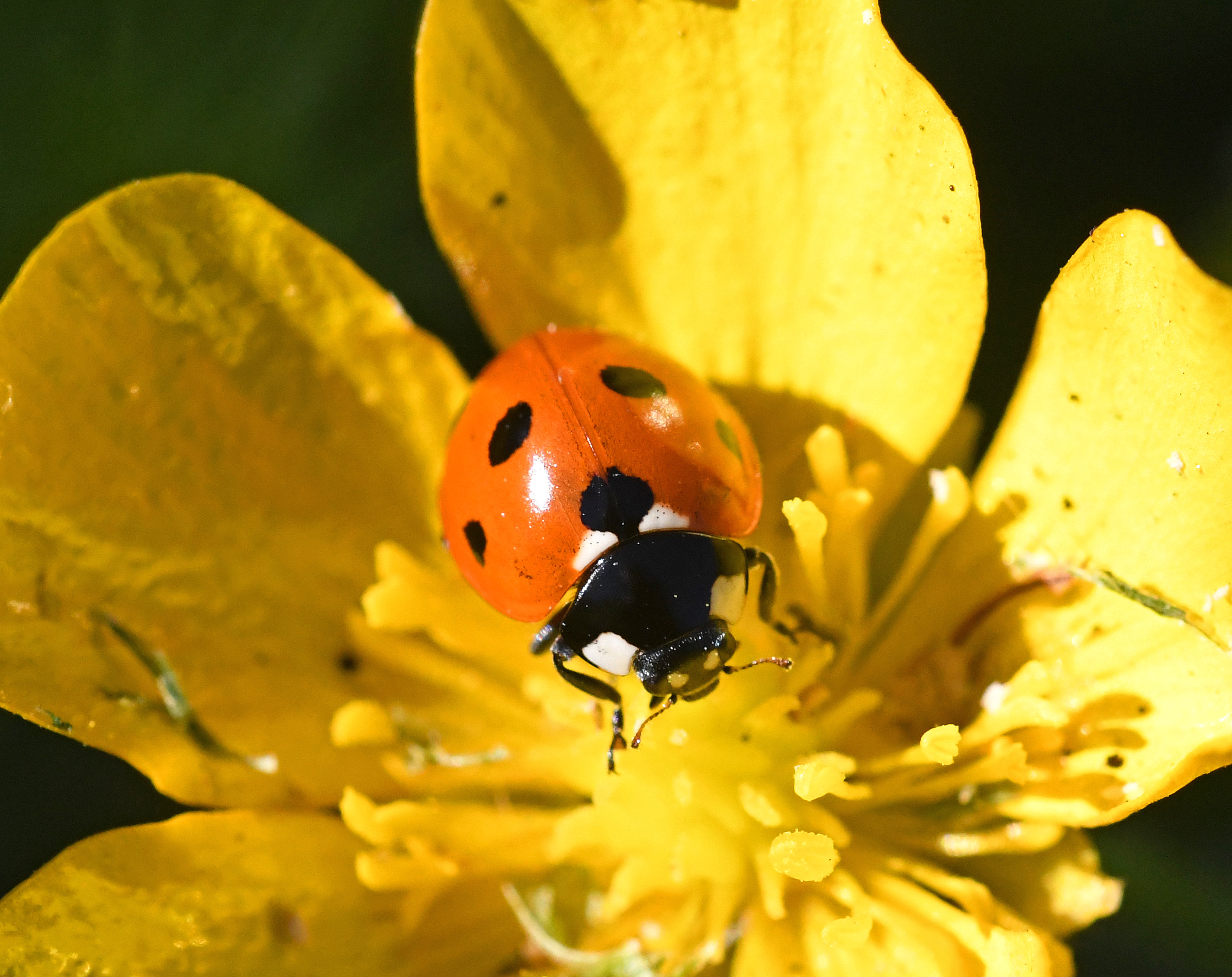 Plodding a regular path near my home, I have been enjoying the emergence of buttercups over the past few weeks. Ever alert to possibility of photographing insects, I have been going around peering into their shiny yellow flowers, to see what I could find. At least I was when the sun was out!