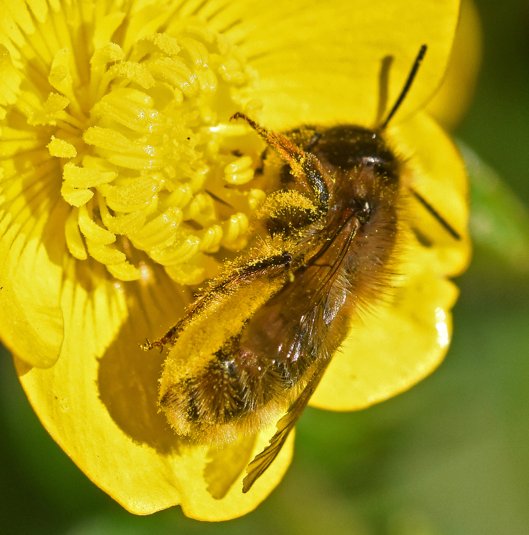 Despite being a more generalist pollinator, the Red mason bee (Osmia bicornis)(see below) is also reportedly able to metabolise Ranunculus pollen (below). I hope I have got the identity of this bee correct! Solitary bees are not easy to identify!😊