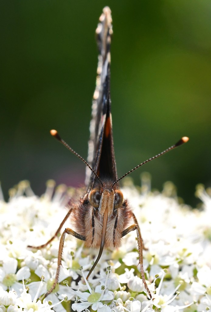 Red admiral (Vanessa atalanta) ‘close up’ 24 June 20 showing proboscis. Photograph by Dr Raymond JC Cannon