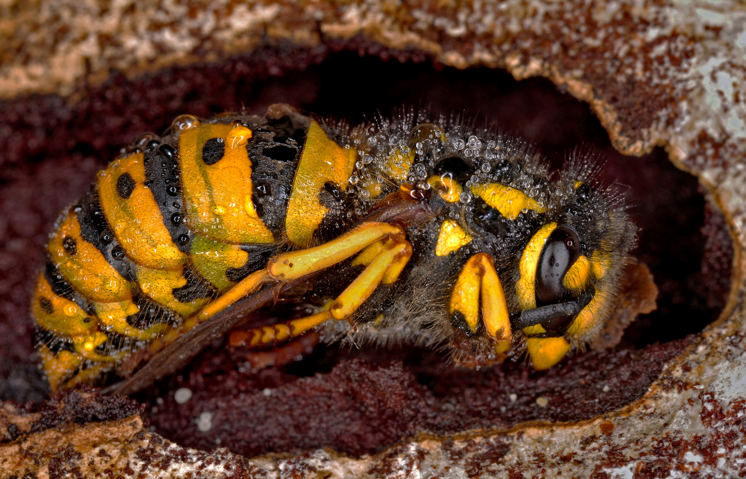 To understand the nature of their sudden change in behaviour, I did some research. I knew about alarm pheromone in aphids – see video here – which causes them to stop feeding an walk away or drop off the plant. Alarm pheromones also play a key role in social insects, but their function in social wasps and hornets still remains relatively poorly understood compared with other social insects.