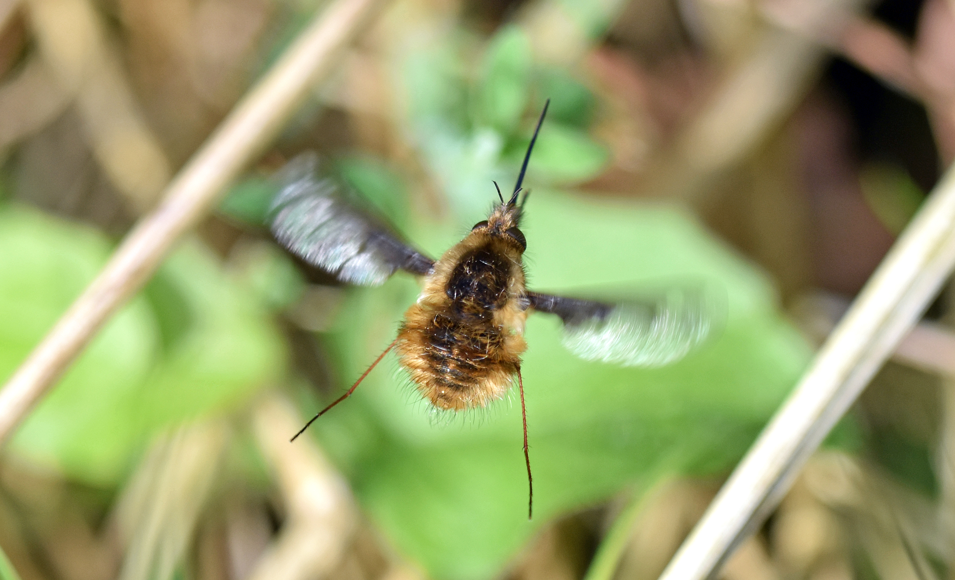 Other flies are markedly furry ! Such as the Bombyliidae, which according to one study are thought to have hairs adapted for carrying pollen. I’m not sure whether that is by accident or design (=evolution). Bee flies emerge early in the year and need to keep warm!