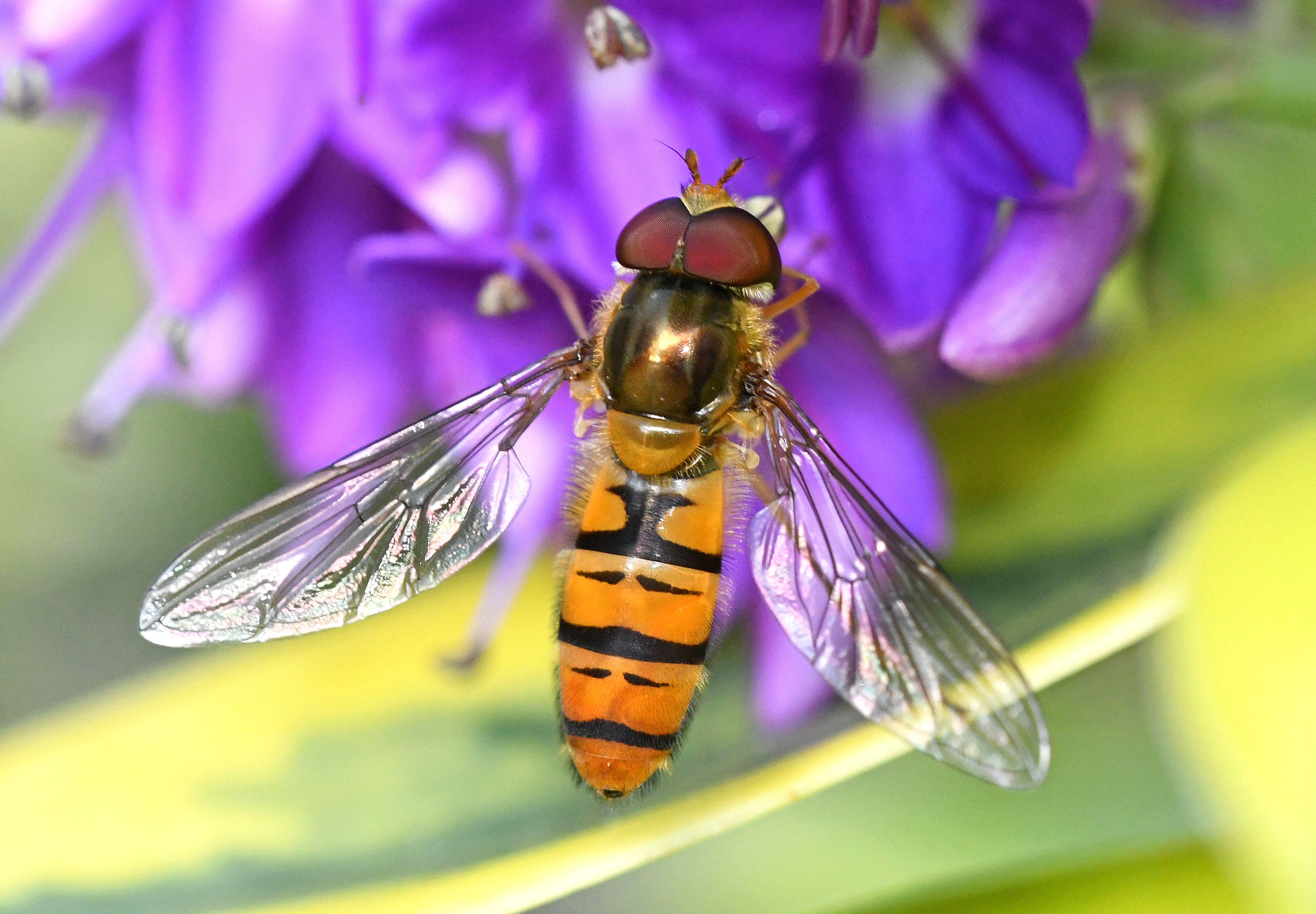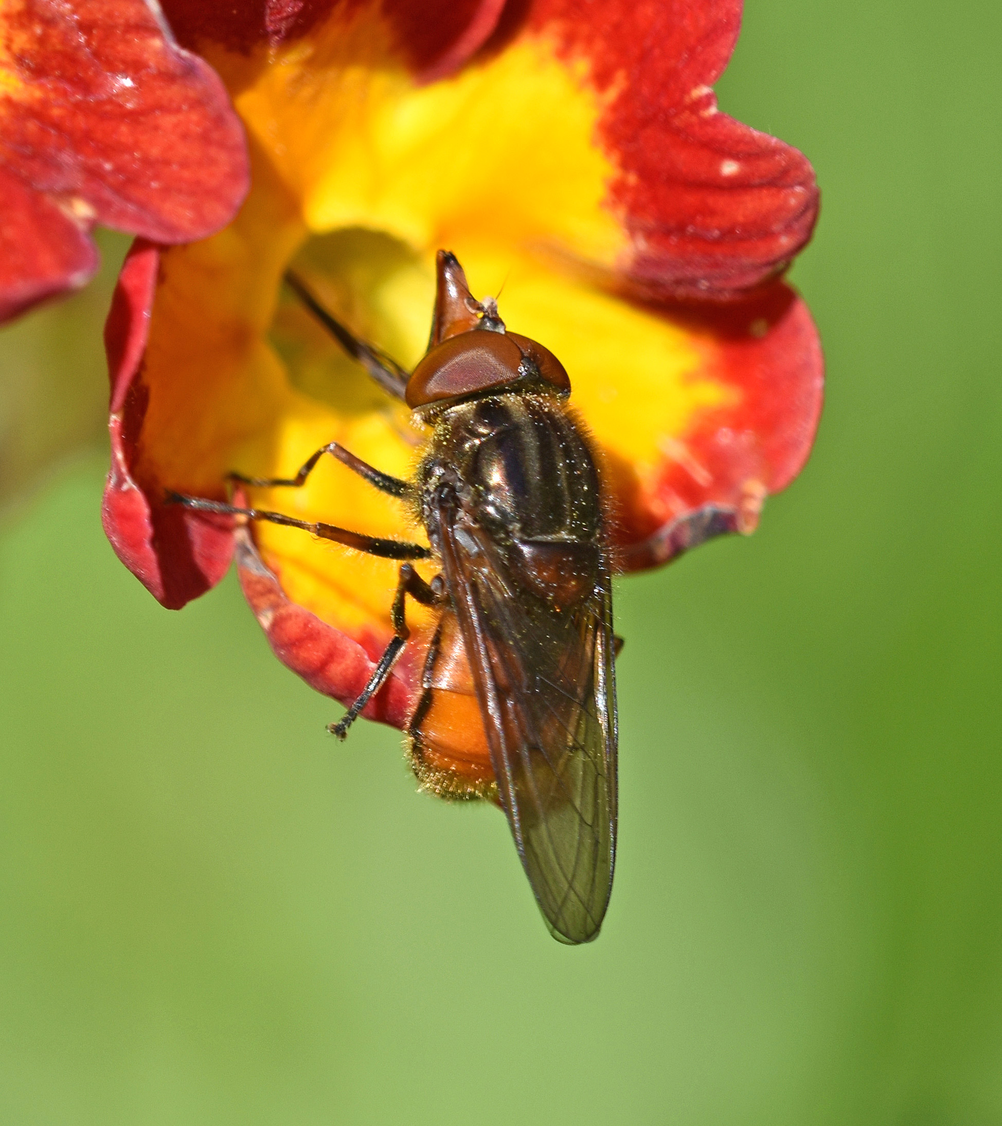 Flies visit flowers for the same reason as bees: for a sip of nectar and a light snack of pollen! Of course, other flies visit host plants to lay their eggs on them. (Entomologists say ‘deposit’ an egg, as if the insects were going to the bank! Stick, insert or poke an egg might be more accurate terms!😊)