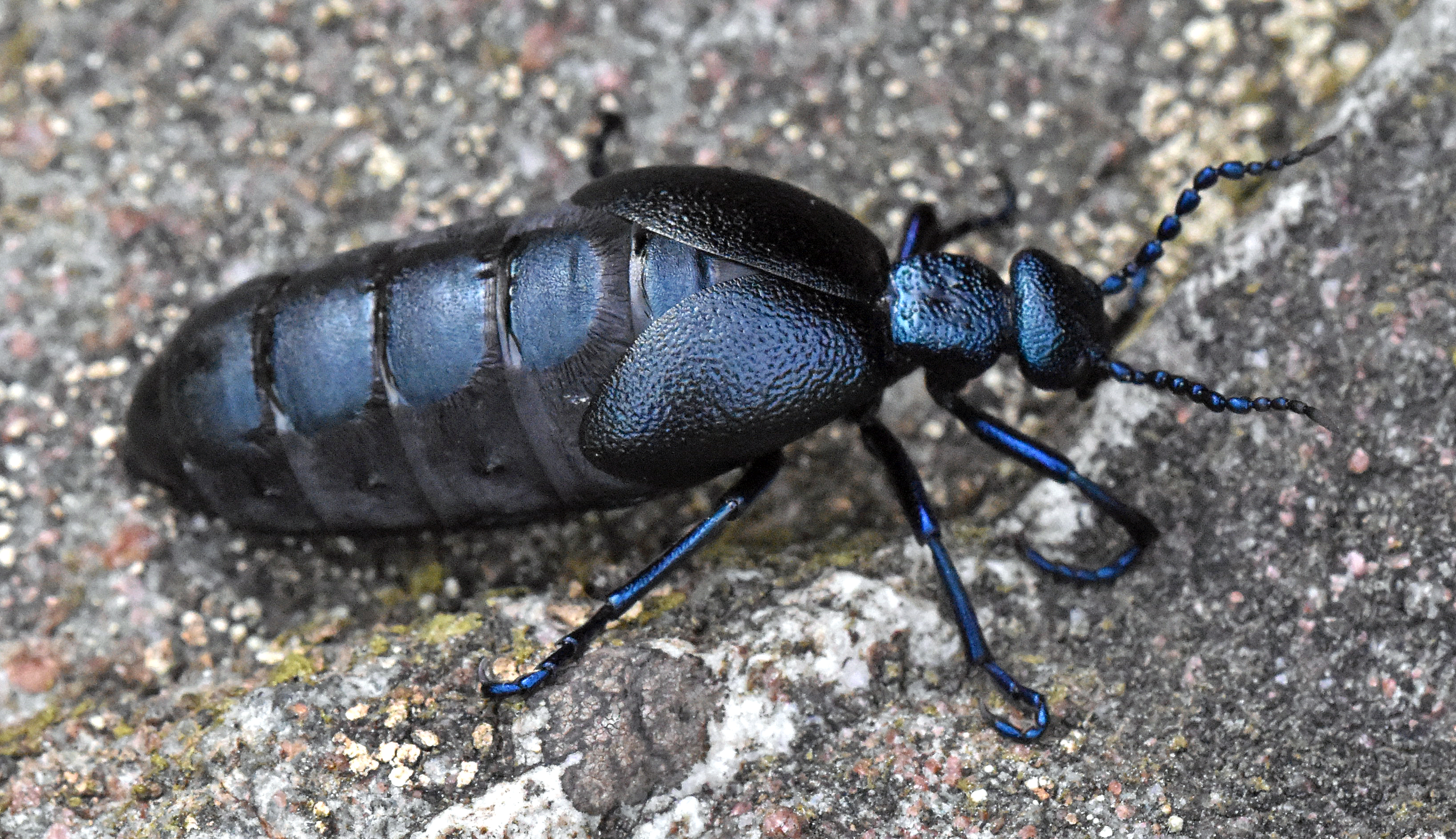 In some blister beetles (Coleoptera, Meloidae), especially in in the subgenus Meloe (below), courtship involves a form of antennal grasping. In these species, the males grasp the female’s antennae with their own antennae and repeatedly pull them in and out of grooved depressions on their heads (Pinto, 1975). In other species, there are specially adapted segments on the male’s antennae which are modified for grasping (see below) (Pinto and Selander, 1970).