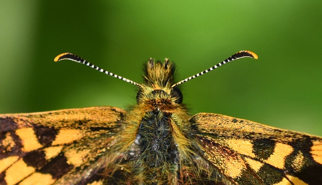 Here’s a rather larger image of this butterfly (below). I wonder why the antennae have yellow tips, like they have been tipped in paint? I suppose it makes them stand out when the butterfly waves its antennae around?