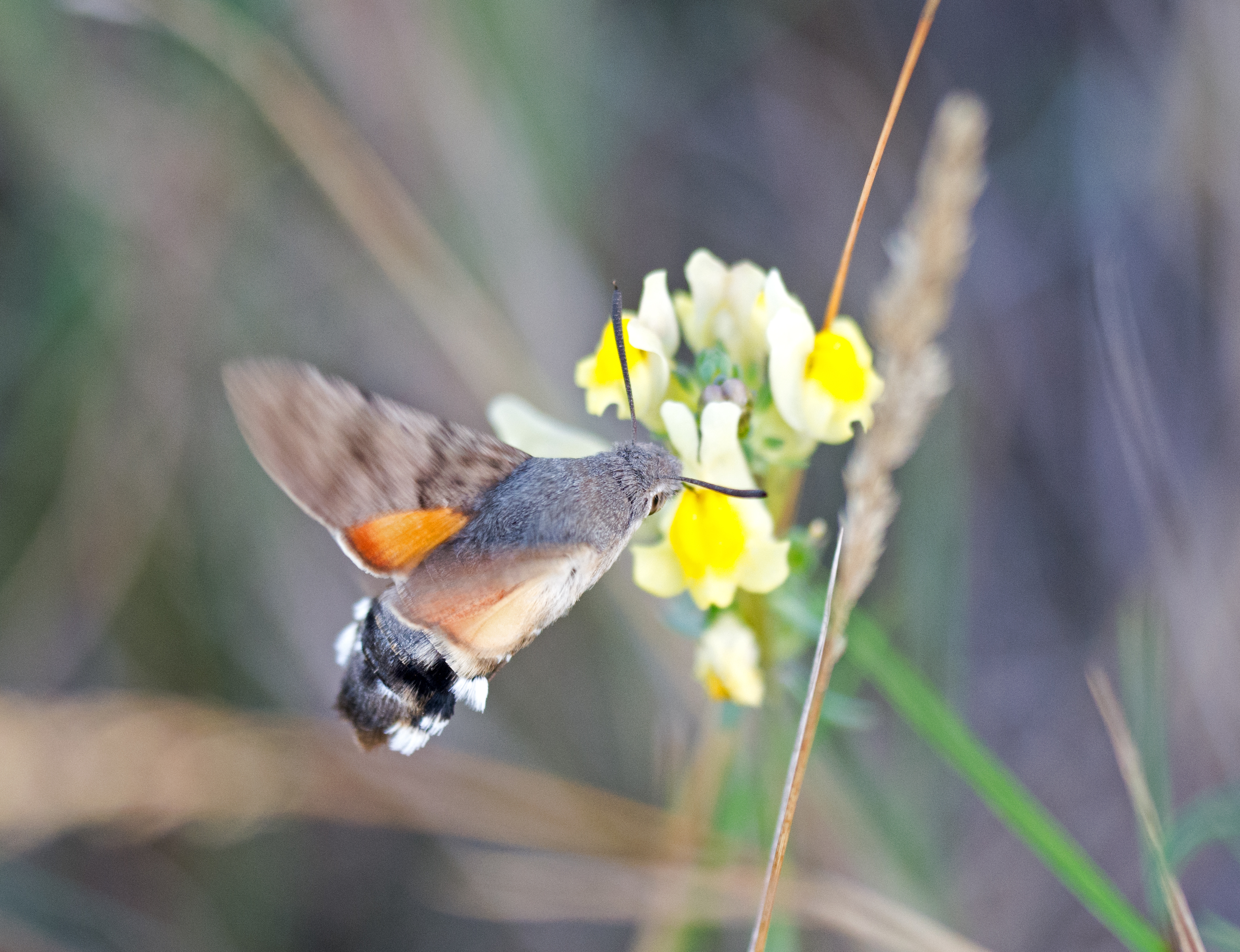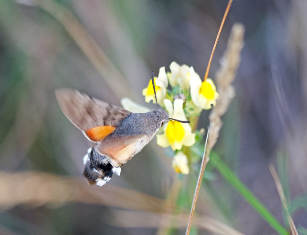 Although insects like hawkmoths use their eyes as well to help them during flight, it is the mechanosensory feedback from their antennae that tells them about their body position, and in particular helps them carry out really fast flight manoeuvres (Dahake et al., 2018). So when we see a fast-moving moth, like a Hummingbird hawk-moth (below), we need to think of it using its antennae as well as its eyes to help it manoeuvre so fast and efficiently.