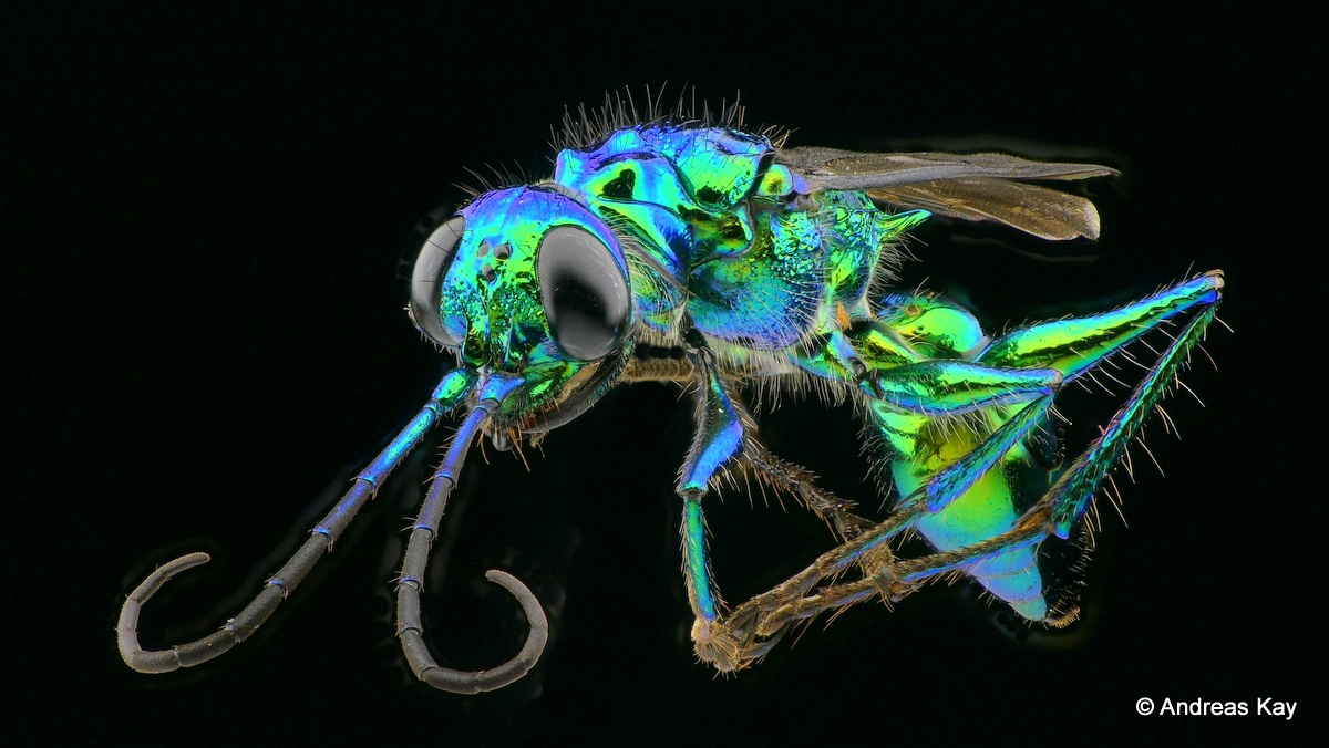 Here are a couple of his fabulous images, of the Emerald cockroach wasp, with a remarkably back story!