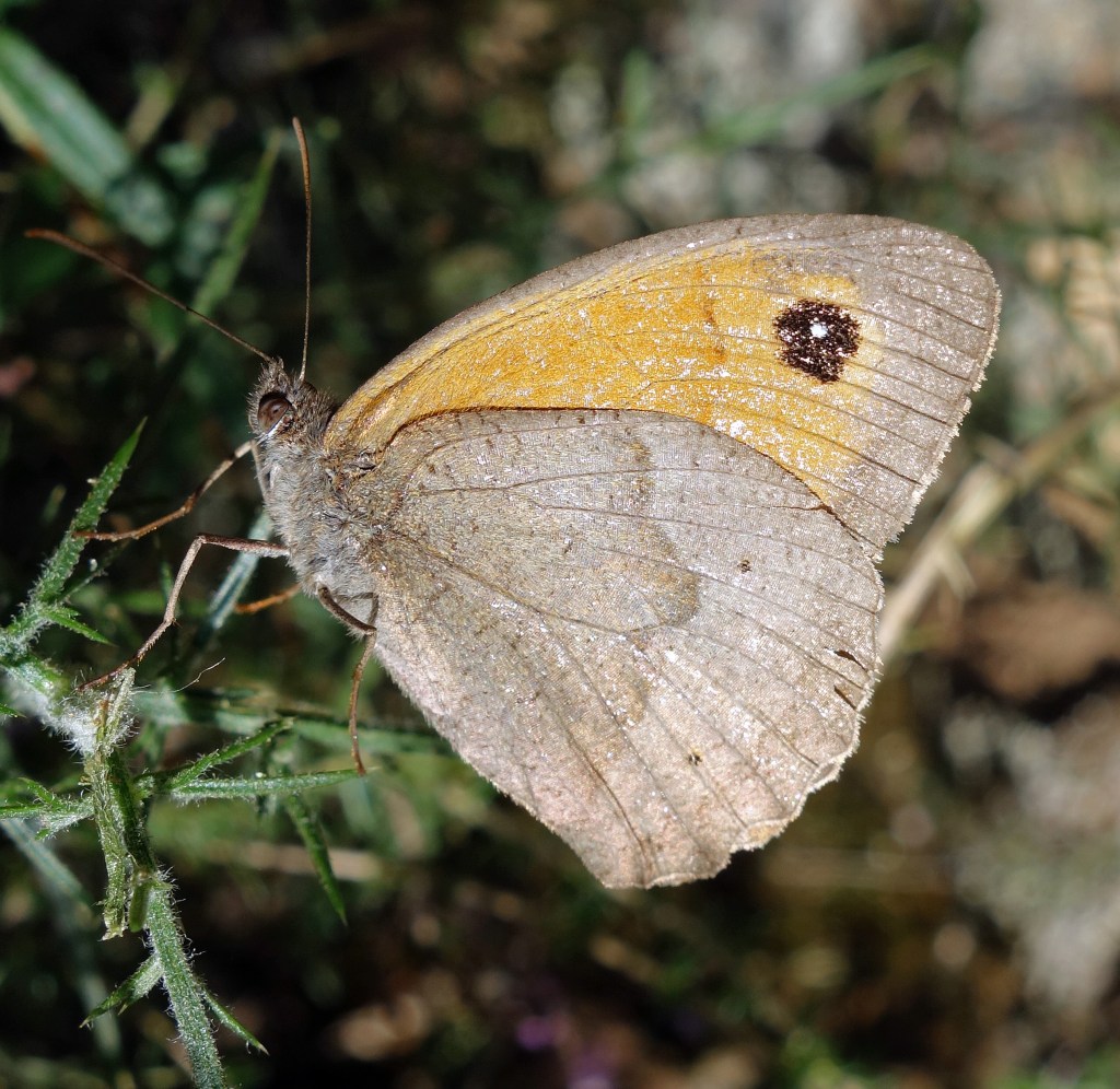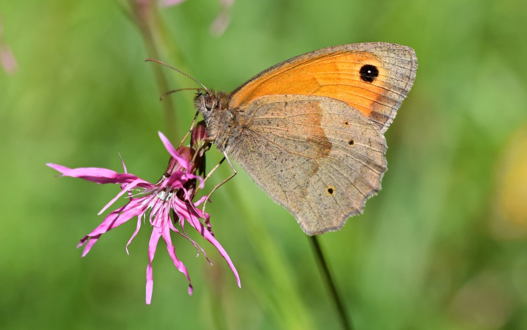 The Meadow Brown, Maniola jurtina (Linnaeus, 1758), is one of the most widespread and common of European butterflies, even though it has suffered as a result of many of its grassland habitats being turned into monocultures of cereals. Nevertheless, perhaps because it is such a generalist and its caterpillars can feed on a wide range of host plants (grasses), numbers remain roughly stable throughout Europe (Van Swaay, et al., 2019). It is probably more localised than it was previously, but it seems that it might to be something of a ‘winner’ in the butterfly climate change sweepstakes (Bowler et al., 2015), where some (most) species are predicted to decline and others (the minority) might increase their abundance and distributions, if we give them a chance. Projected change in butterfly abundance under climate change vary from –92% (The dark green fritillary, Argynnis aglaja) to +68% (The Meadow Brown, Maniola jurtina) (Isaac et al., 2011).