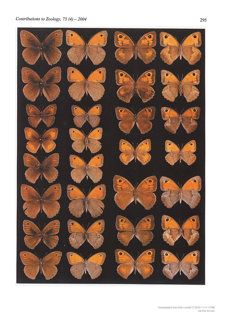 A nice illustration of the large morphological variation in butterflies of the genus Maniola was provided in a paper by Grill et al. (2004) (below).