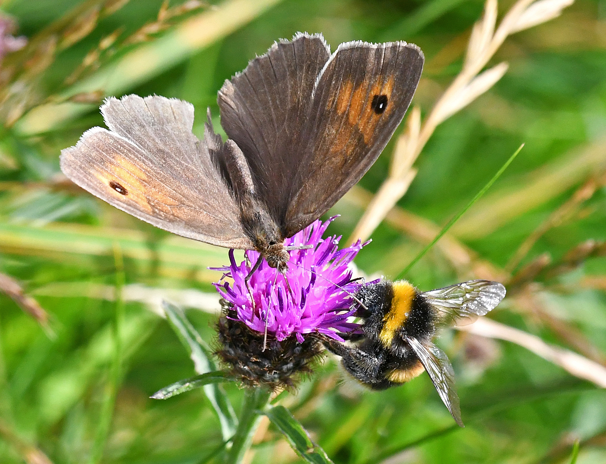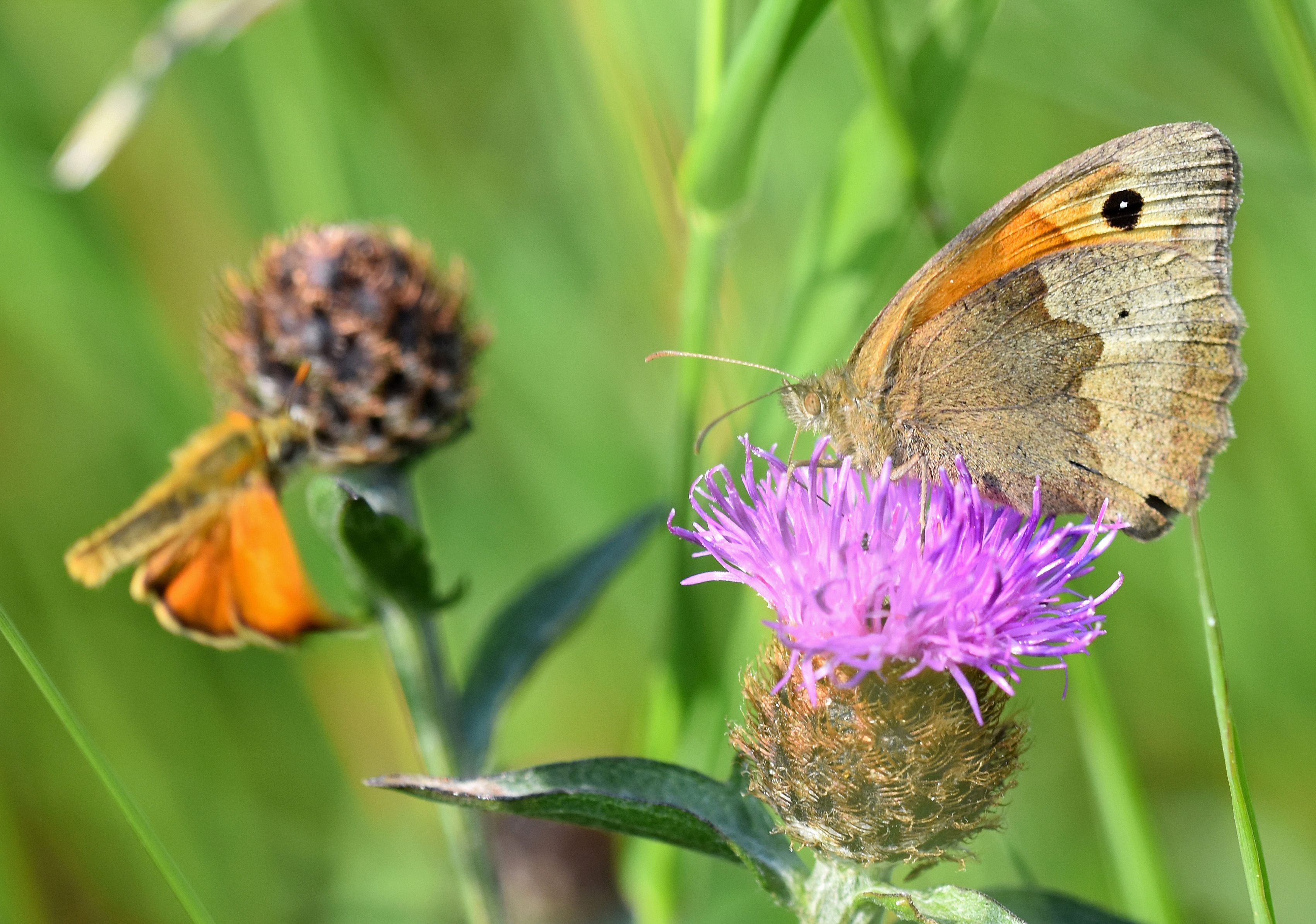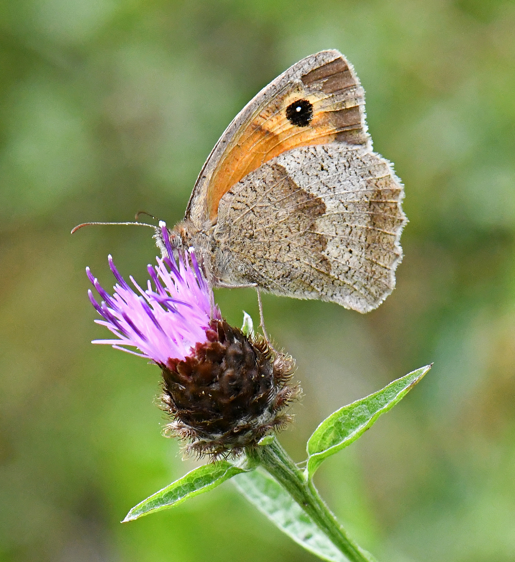 The Meadow Brown, Maniola jurtina (Linnaeus, 1758), is one of the most widespread and common of European butterflies, even though it has suffered as a result of many of its grassland habitats being turned into monocultures of cereals. Nevertheless, perhaps because it is such a generalist and its caterpillars can feed on a wide range of host plants (grasses), numbers remain roughly stable throughout Europe (Van Swaay, et al., 2019). It is probably more localised than it was previously, but it seems that it might to be something of a ‘winner’ in the butterfly climate change sweepstakes (Bowler et al., 2015), where some (most) species are predicted to decline and others (the minority) might increase their abundance and distributions, if we give them a chance. Projected change in butterfly abundance under climate change vary from –92% (The dark green fritillary, Argynnis aglaja) to +68% (The Meadow Brown, Maniola jurtina) (Isaac et al., 2011).