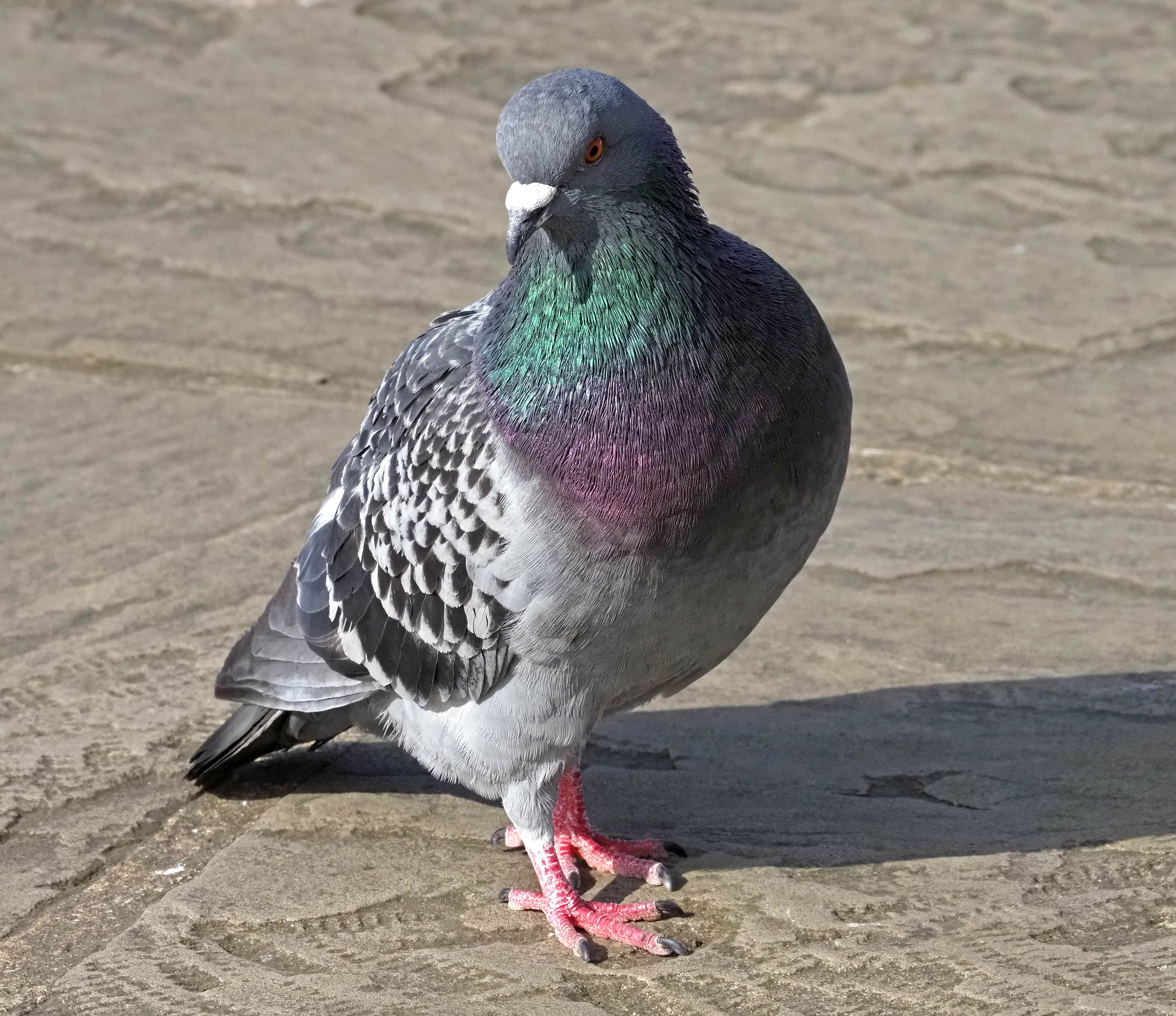 It can be very hard to tell apart male and female domestic pigeons, also called rock doves, Columba livia. There are differences, for example in the size of body, neck, and legs, the shape of nasal knobs, head, forehead, and the degree of iridescence, but there is great deal of overlap in all of these features, so apparently, they cannot be reliably used by humans to determine the sex of pigeons (Nakamura et al., 2006).