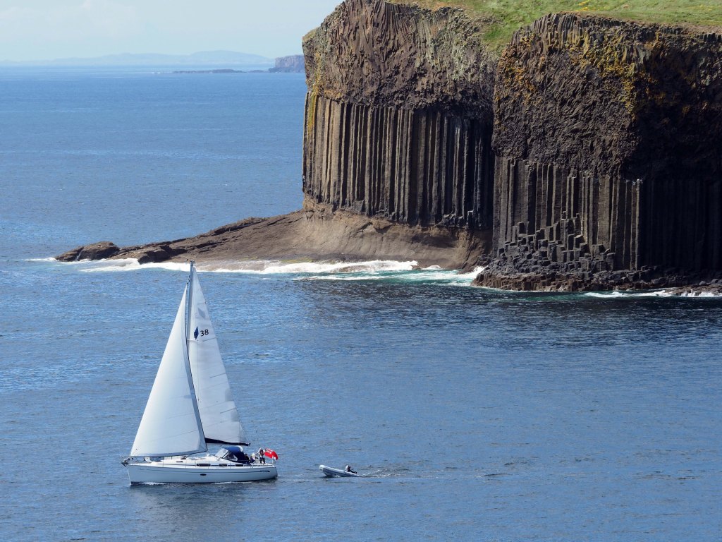 2. Hi, that’s us you caught sailing past Staffa on our boat ‘Élodie’ on route to Iona. I have a photo of the cruise ship too. Heading to Alisa Craig this year with a very keen photographer.