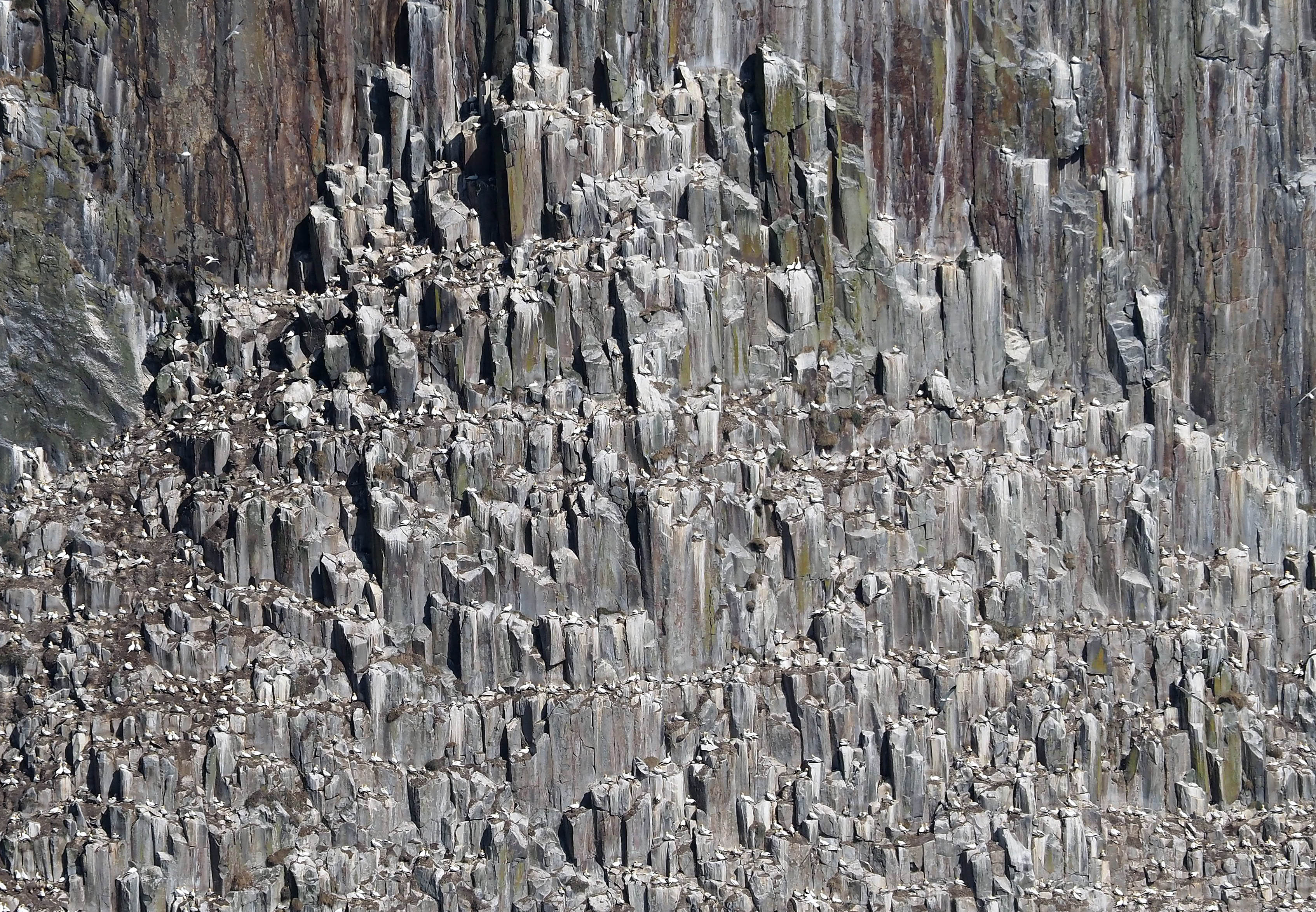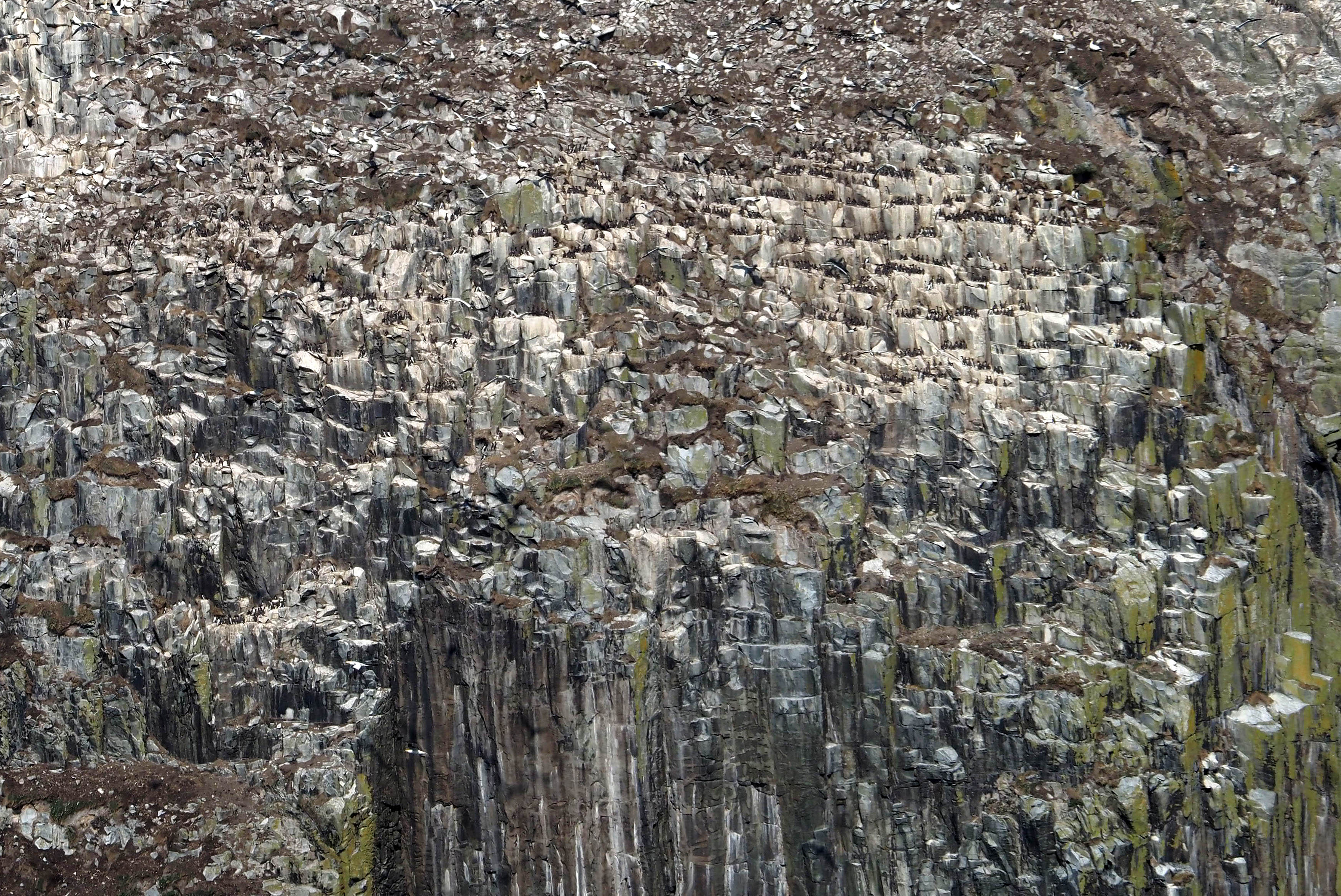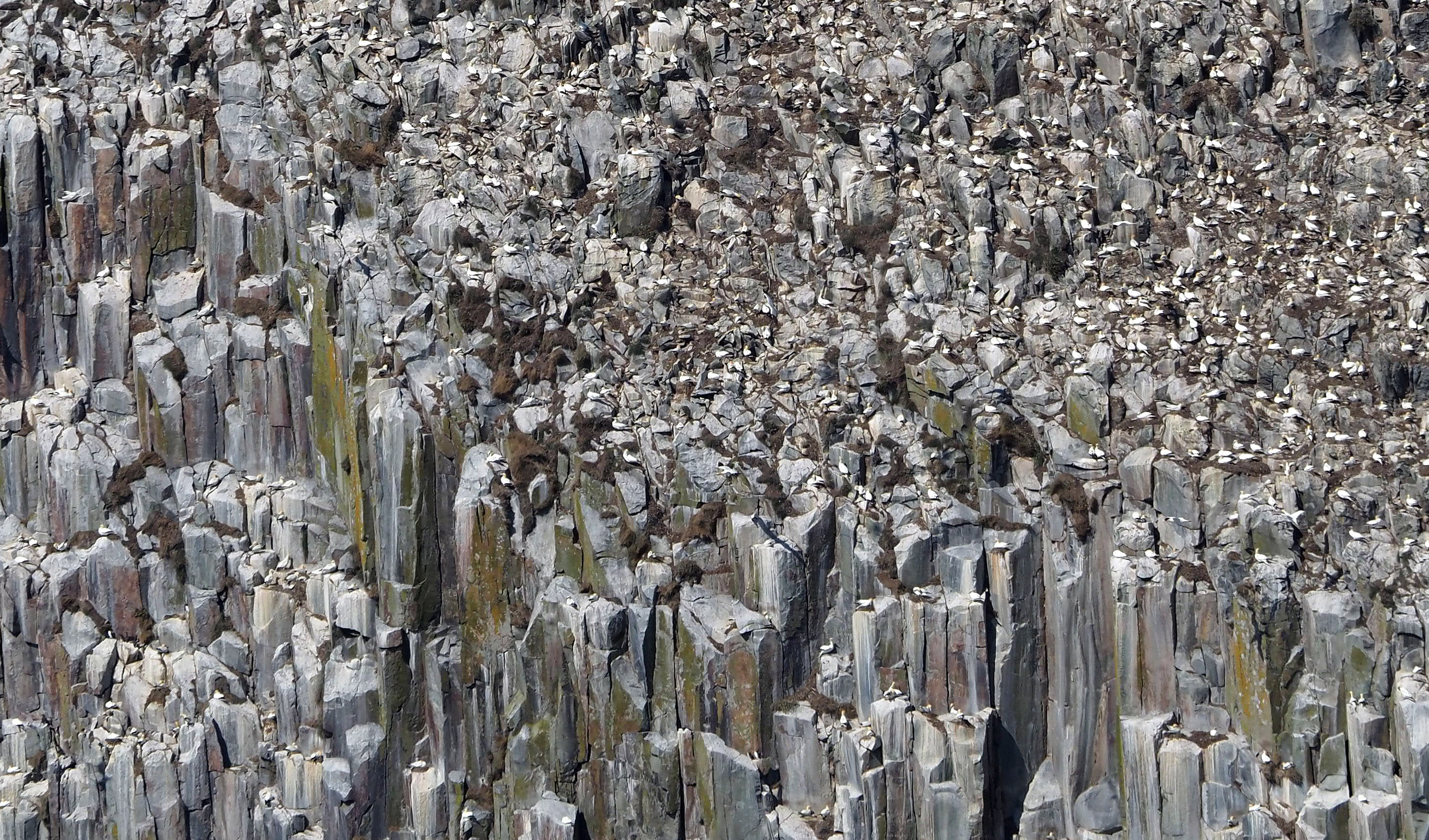 At one point, the Gannets seemed to come tumbling off the cliffs in waves. Thousands flowing down the sides of the island like water. What was driving them off? A Skua?
