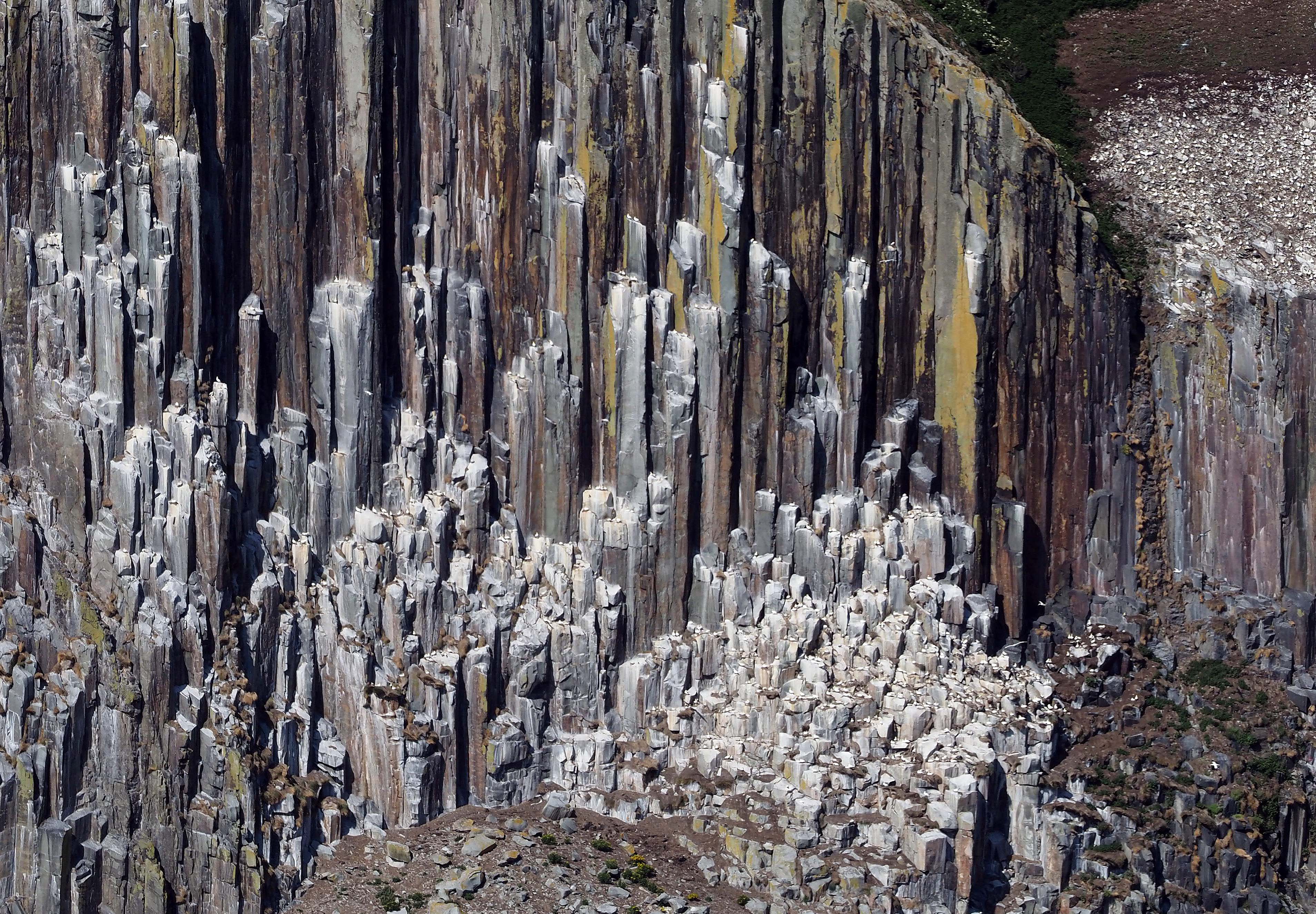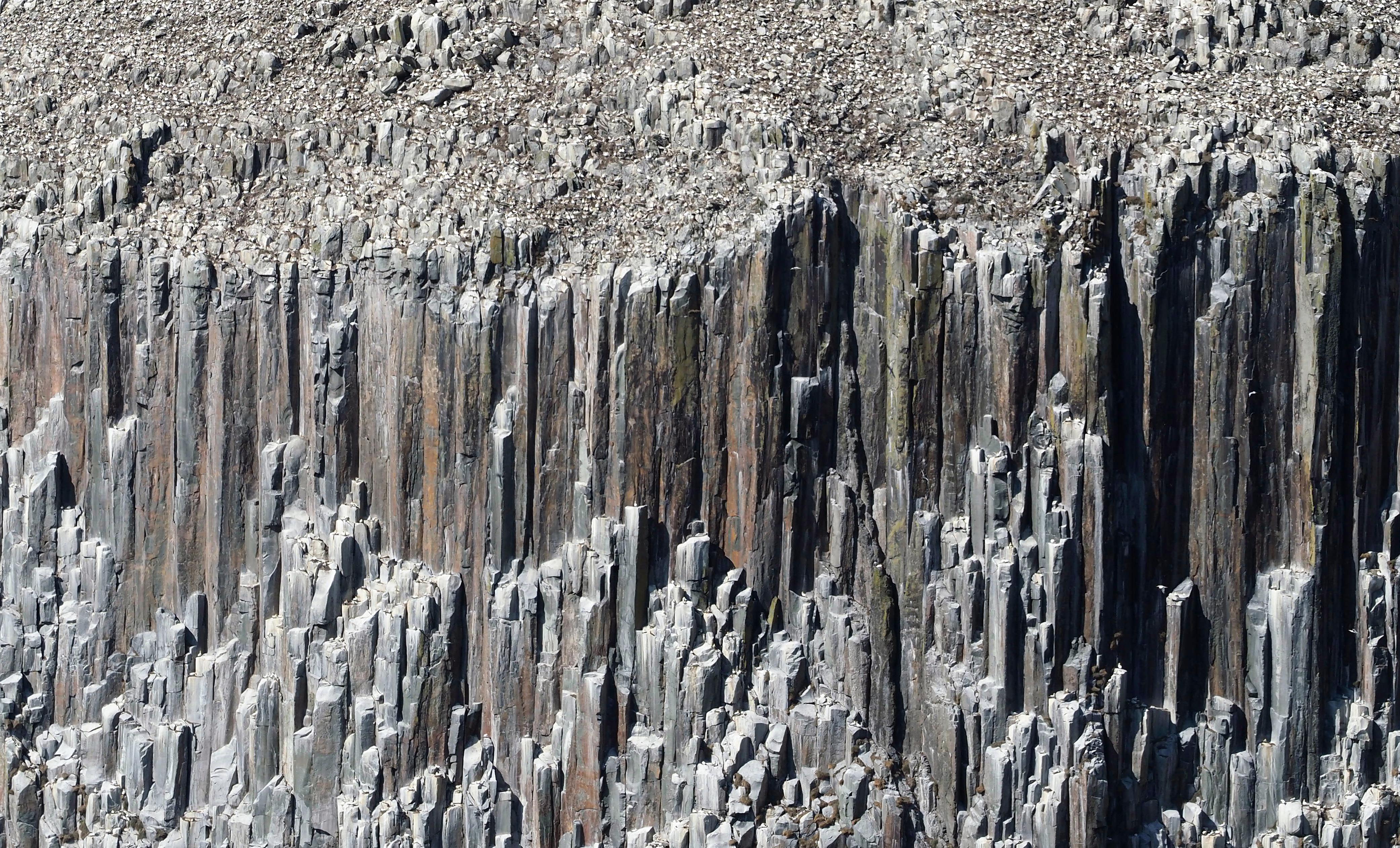 Gannets nesting on top of granite pseudo-columns on Ailsa Craig