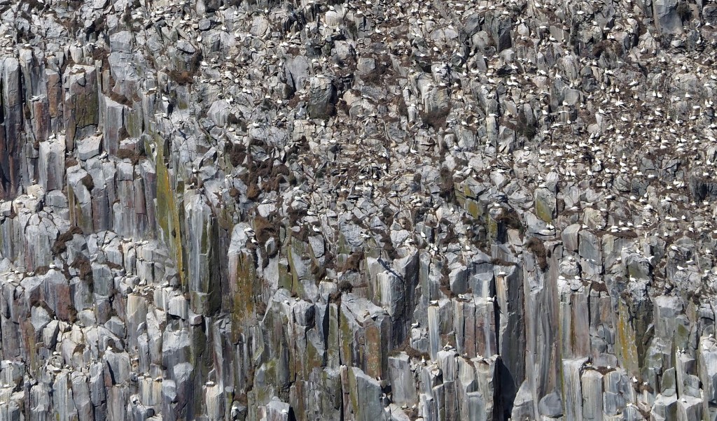 According to my calculations, Ailsa Craig is home to about 15% of the northern gannets in Scotland, which number around 243,505 apparently occupied sites. I.e. sites occupied by one or two Gannets irrespective of whether nest material was present (Murray et al., 2015).