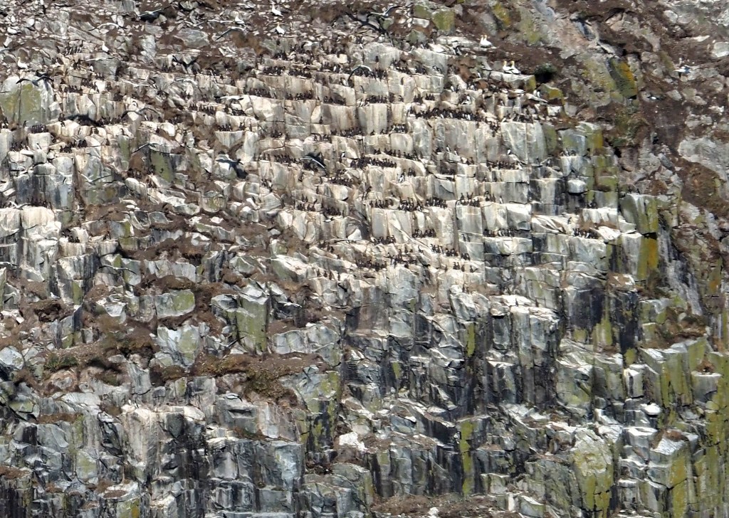 There are also thousands of guillemots on Ailsa Craig (below). As well as Razorbills, Kittiwakes, Fulmar, Shags, Puffins (now that the rats have been eliminated), and Black-backed gulls.
