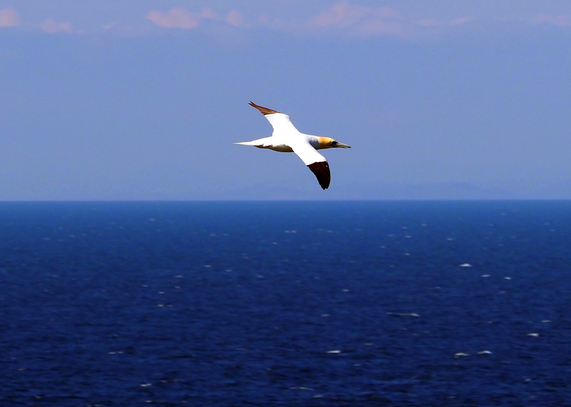One has to zoom in, or select a small portion of the image to see the gannets (below).