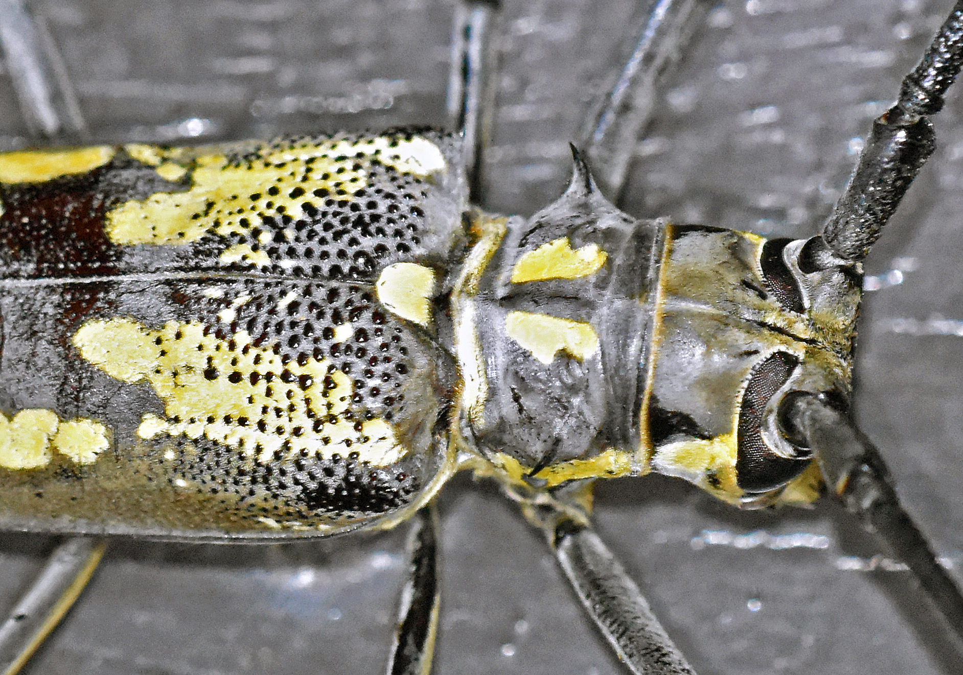 Bumpy cuticle of a large longhorned beetle (Batocera lineolata) from Thailand