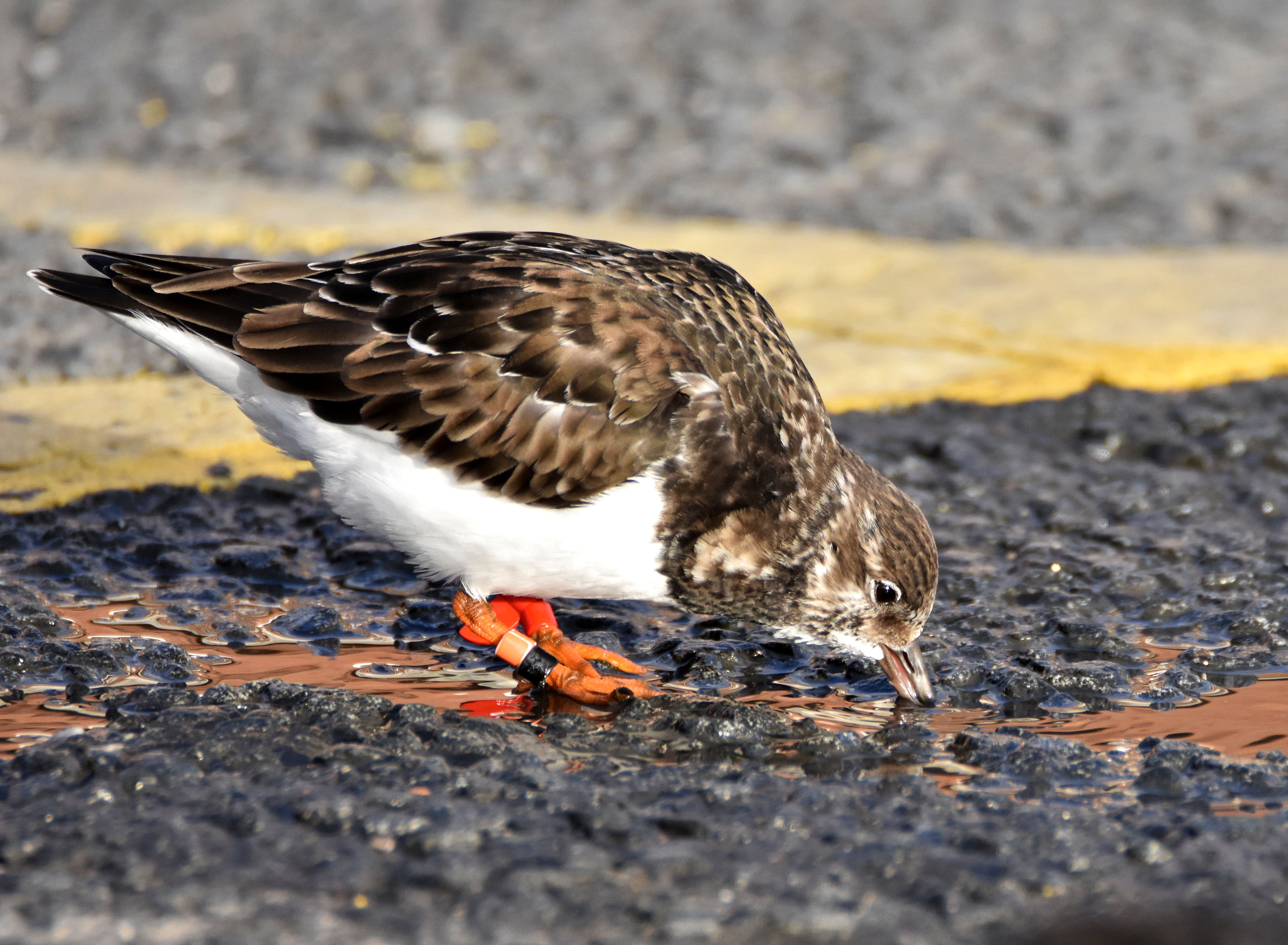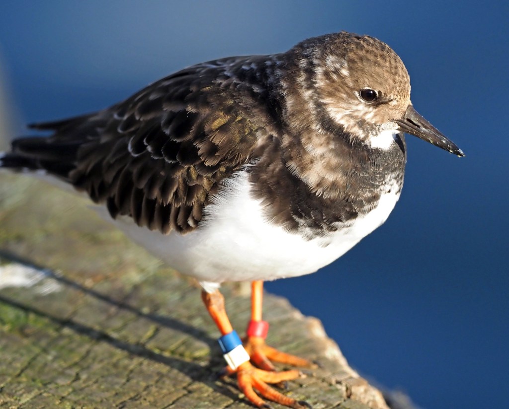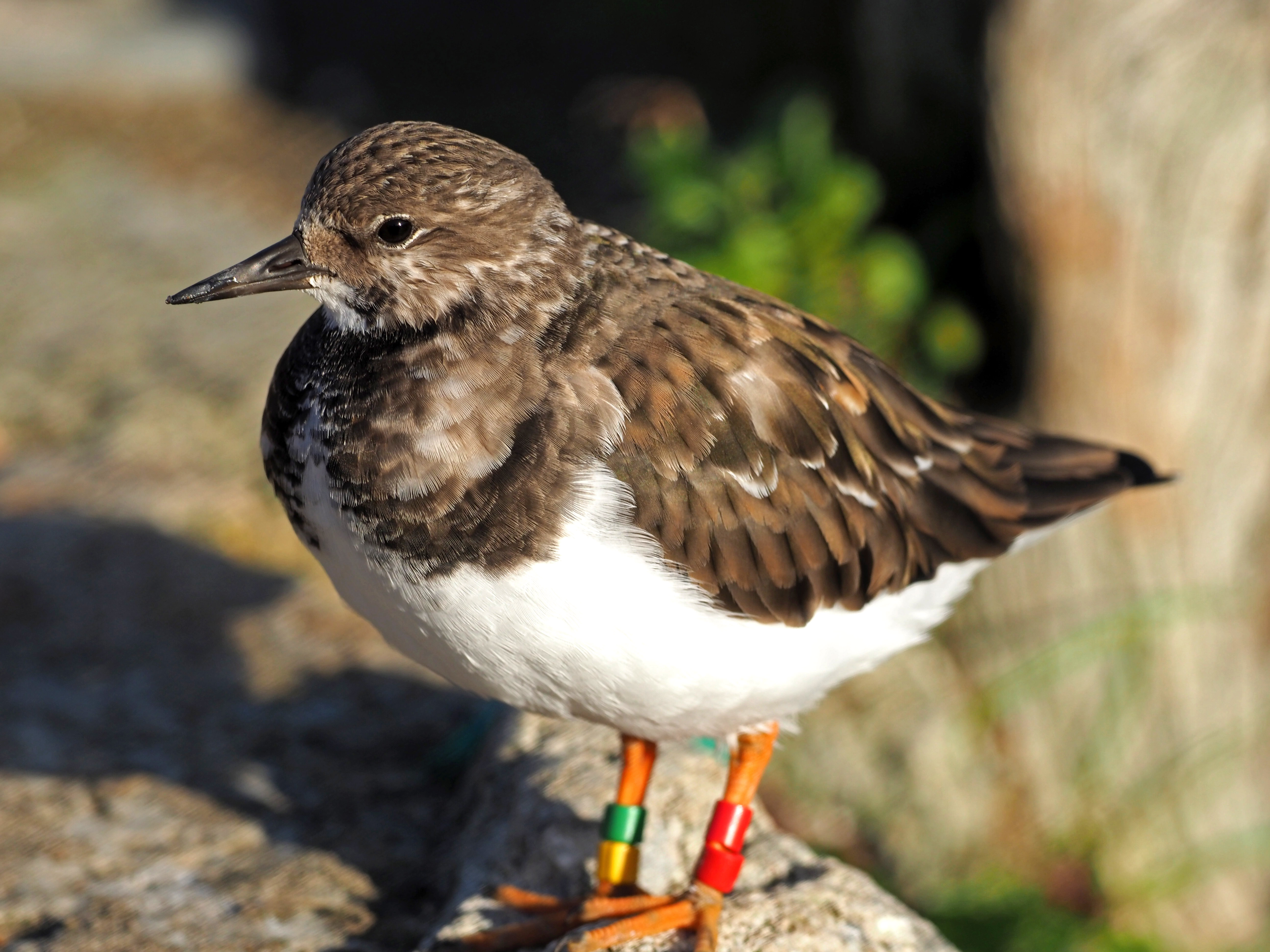 Although they presumably have no trouble in recognising each other, it think it is almost impossible for humans to spot individuals in non-breeding plumage. That is why people have ringed them in the past (below). A very handy way to recognise each bird, although whether the turnstones like their plastic bracelets is harder to say!