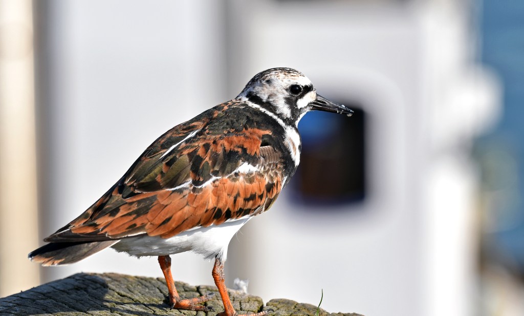 We are lucky to have a small population of Ruddy Turnstones, Arenaria interpres, in Scarborough. They spend most of the year here, except for the summer when they fly up to the Arctic to breed. Before they leave in May, they have usually moulted into their gorgeous breeding plumage (below).