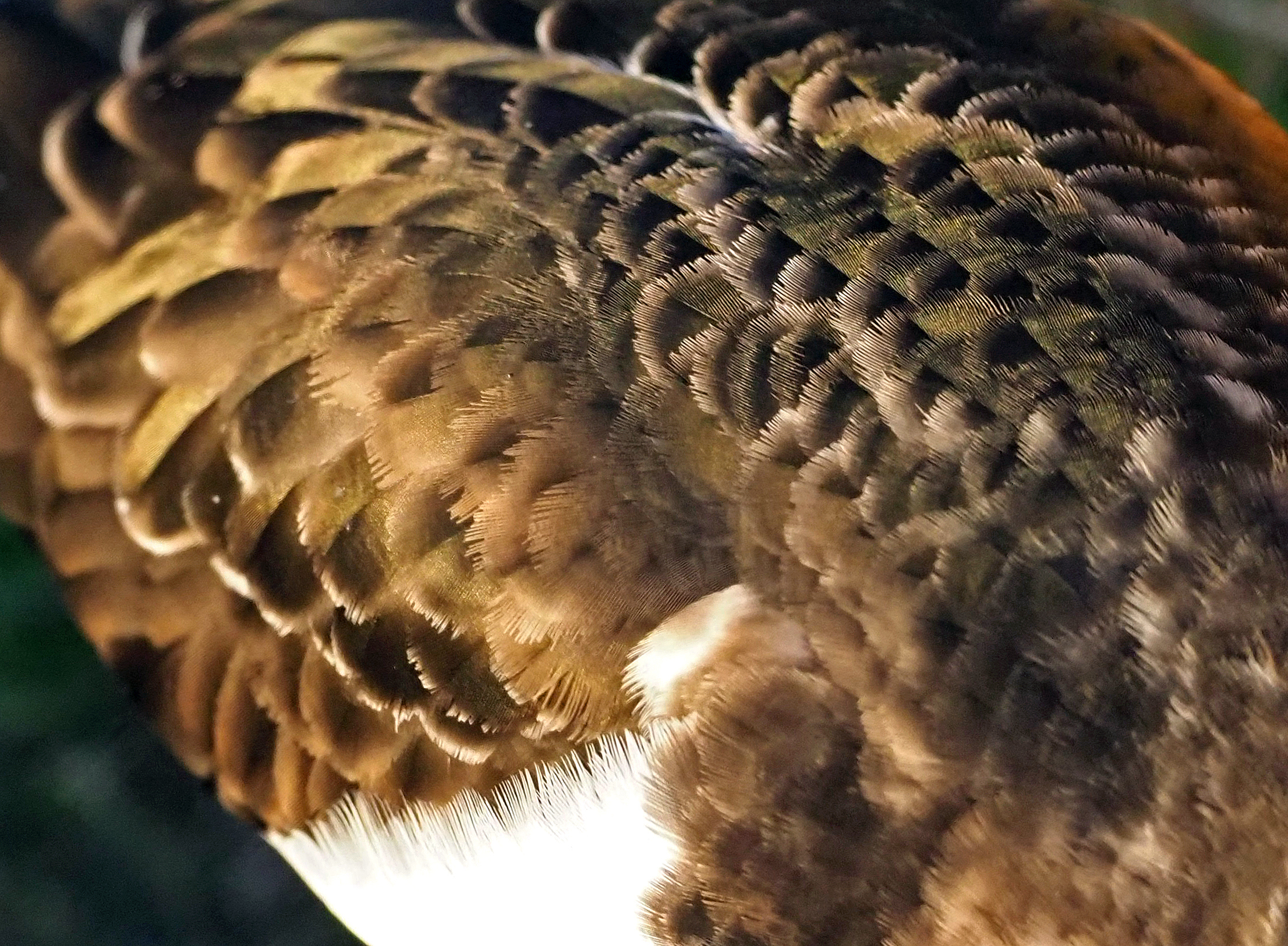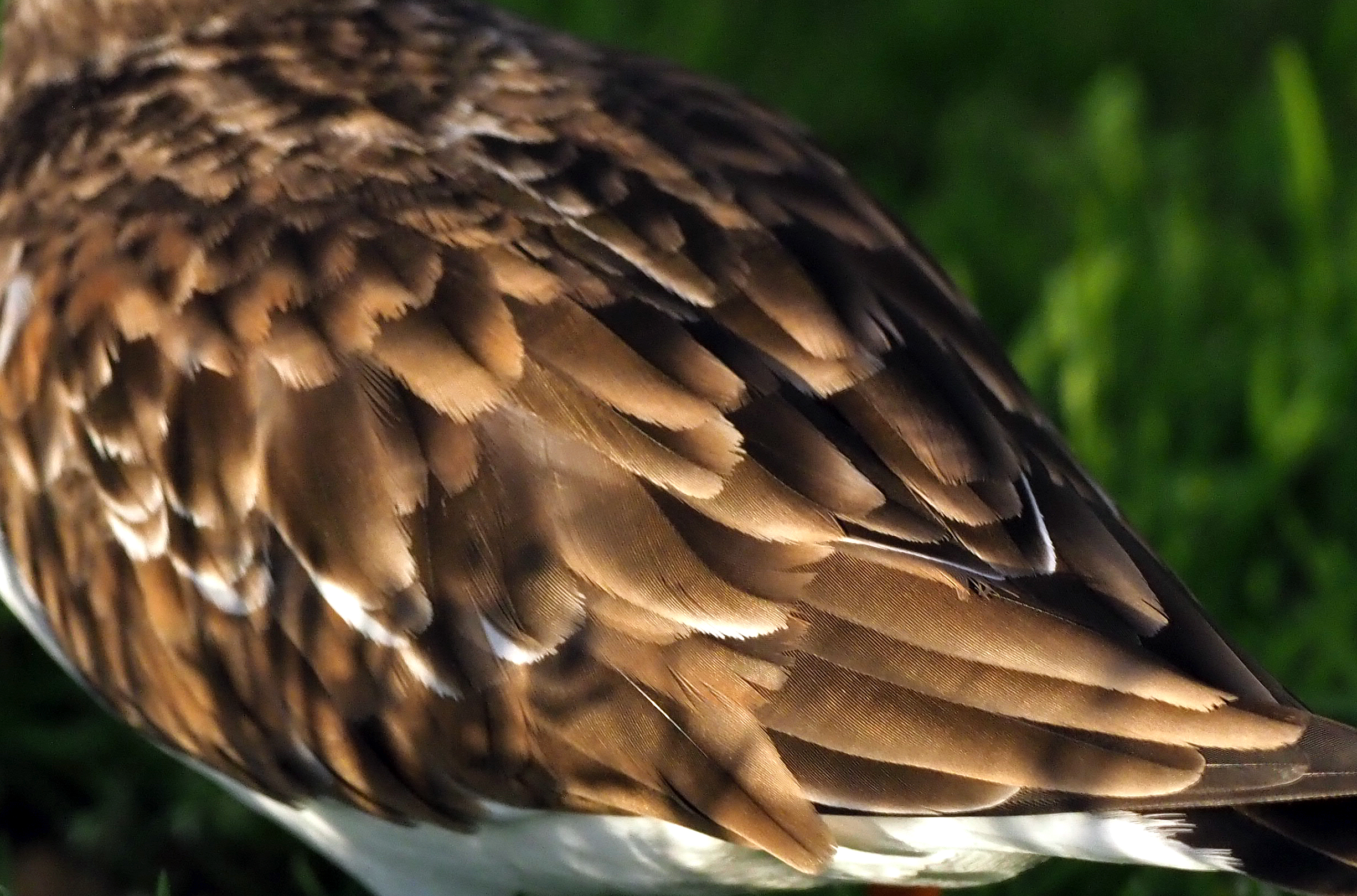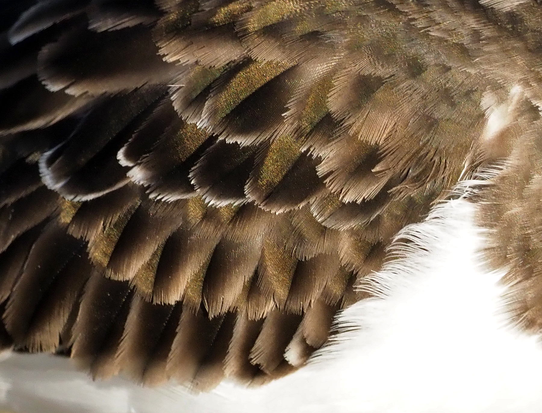 Dark colours, especially those produced by melanin, protect feathers from damaging UV radiation that might otherwise accelerate the rate of feather wear. The pigments occur in granules that are restricted to the outermost layers of the feather keratin. There are different types of melanin. Eumelanin is responsible for the browns, greys and blacks Phaeomelanin produces various shades of brown, chestnut and red. Presumably, the colour changes are mediated by day length.