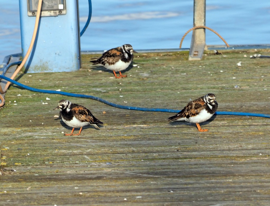 Ruddy turnstones usually return to the same site every year; their winter home. A study carried out in Hartlepool, found that most of the local turnstones survived between spring and autumn and came back to the same feeding area (Burton and Evans 1997). In Scarborough, they mostly roost in the outer harbour, on a wooden walkway by the yachts (below), out of the wind! These ones had just returned in August of this year.