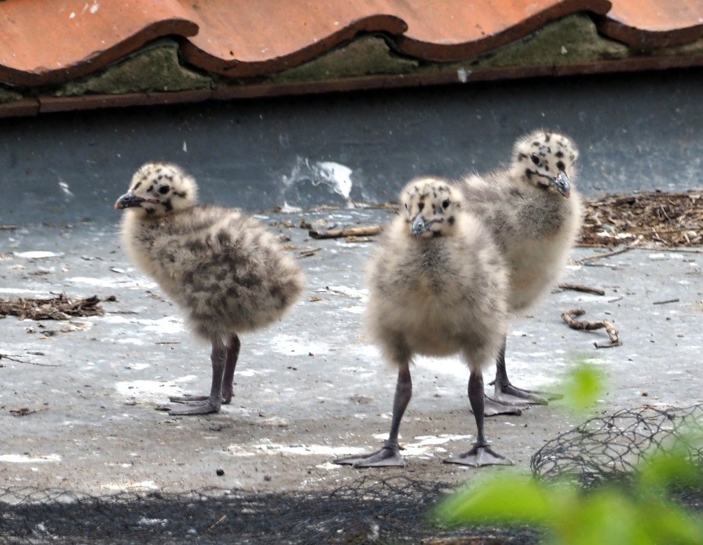 Measures can however, be successful in preventing gulls from nesting, but this often just pushes the problem onto a neighbouring roof! I noticed that the owners of this flat roof seem to have been successful in preventing nesting this year (below, right). Last year, three chicks hatched out and grew up on this little space (below left).