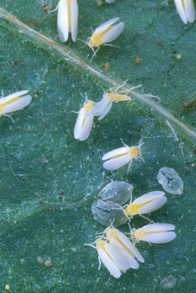 Scott Bauer, USDA Agricultural Research Service • Public domain https://en.m.wikipedia.org/wiki/Silverleaf_whitefly#/media/File:Bemisia_argentifolii_1316008.jpg