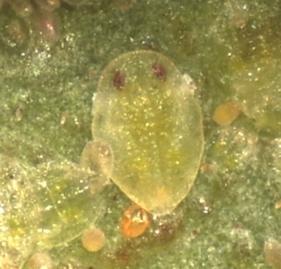 Bemisia tabaci puparium on sweet pepper. Photo by Gabriel TERRAZ https://upload.wikimedia.org/wikipedia/commons/b/bd/Puparium_of_Bemisia_tabaci.jpg