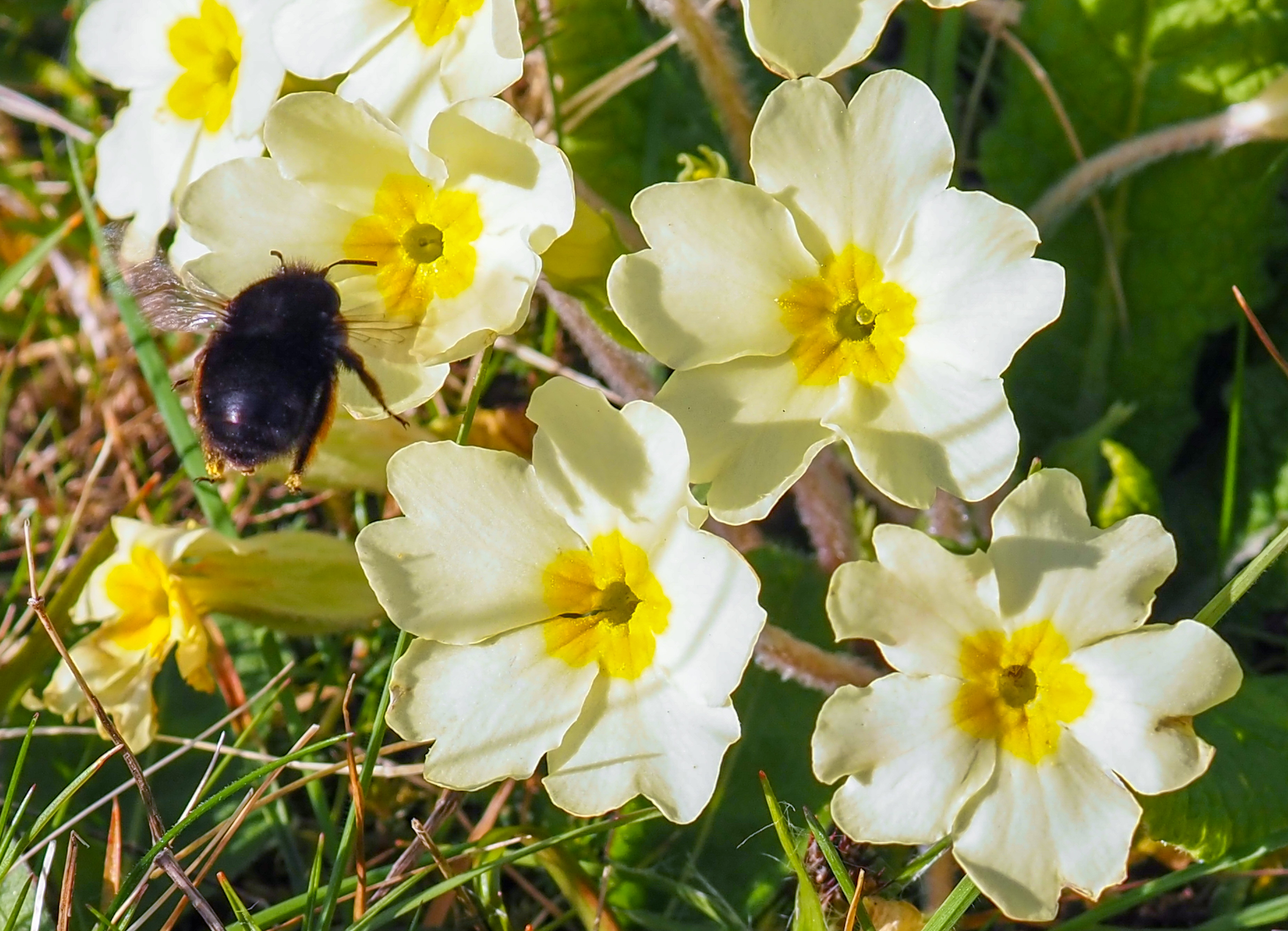 Primulas attract both bee-flies and bees which are active in the early Spring.