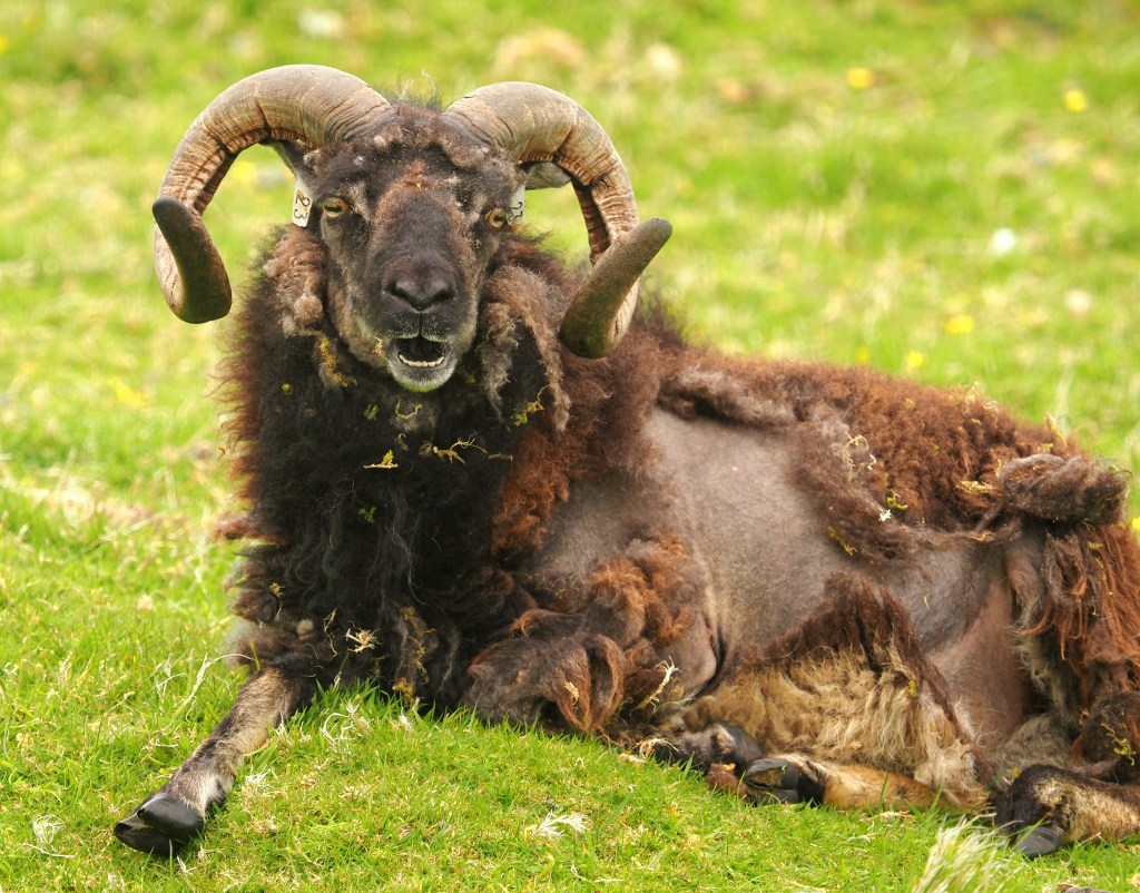 The small brown Soay sheep on these islands are descended from some of the earliest domestic sheep, which spread through Europe in the Bronze Age “reaching Britain’s remotest islands between three and four thousand years ago.” (Clutton-Brock and Pemberton, 2004).