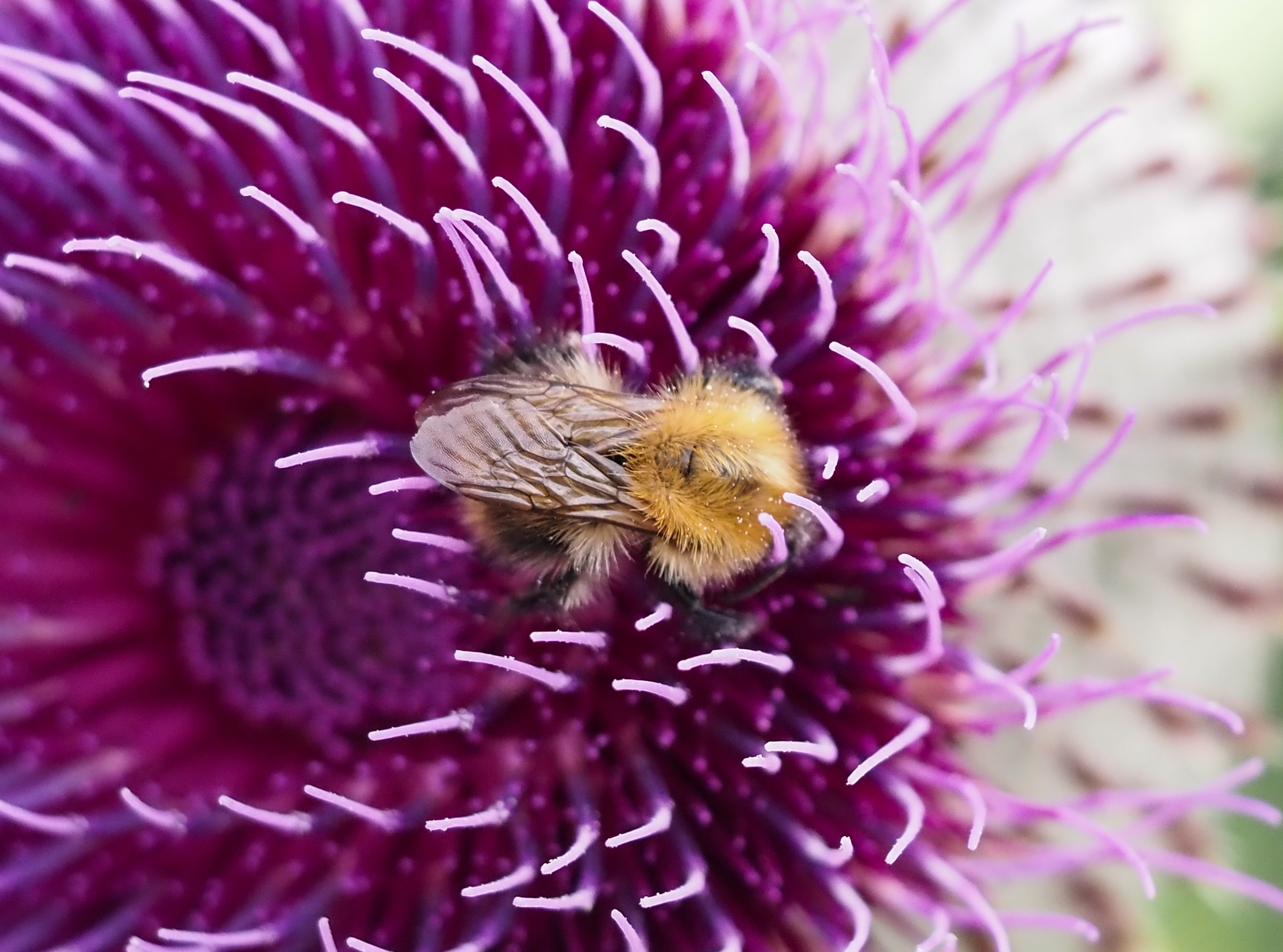 The flowers themselves are rich in nectar and attract bees, flies, beetles, butterflies and moths. I was impressed with how the bees pushed themselves through the florets to access the nectar.