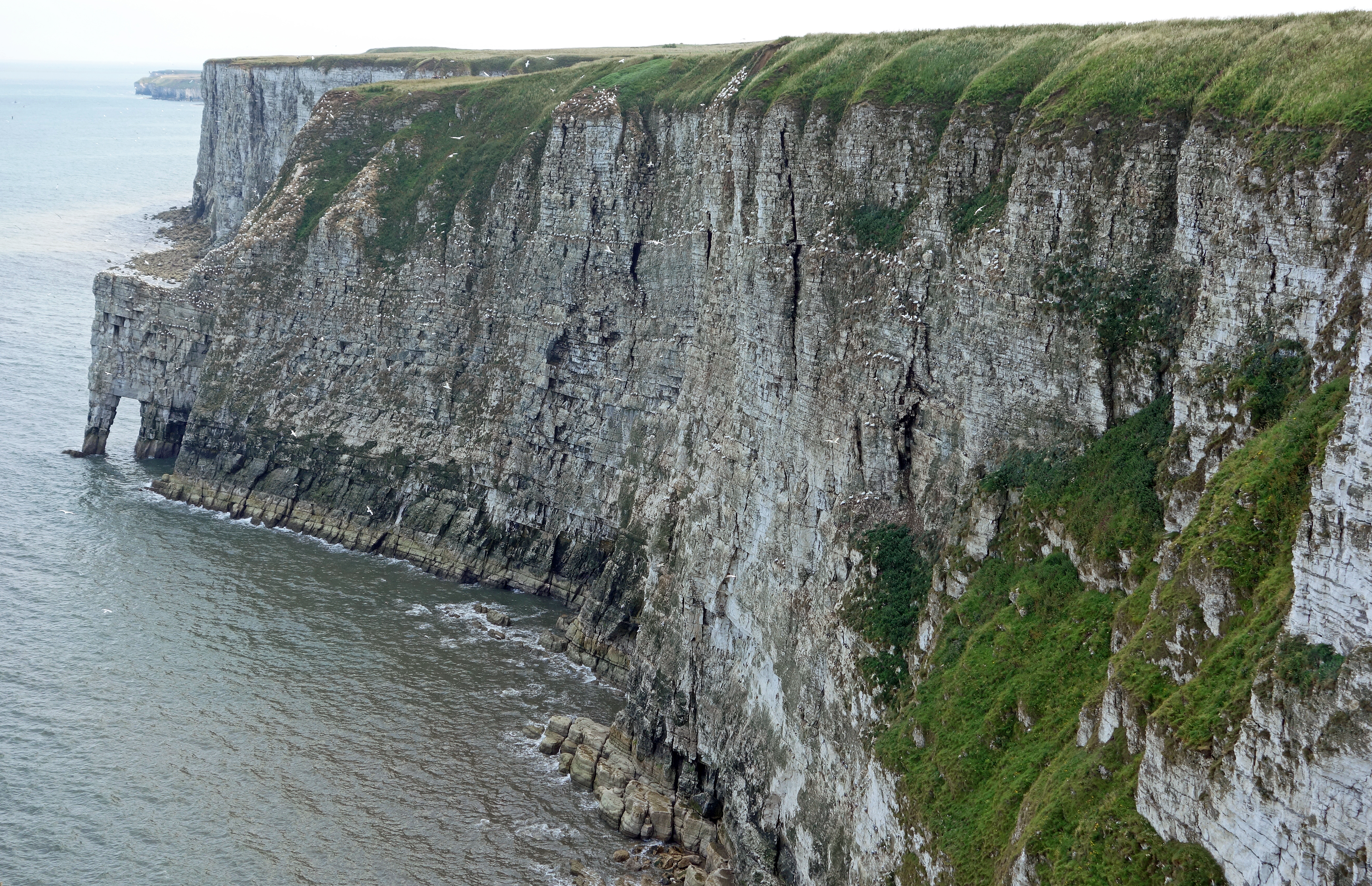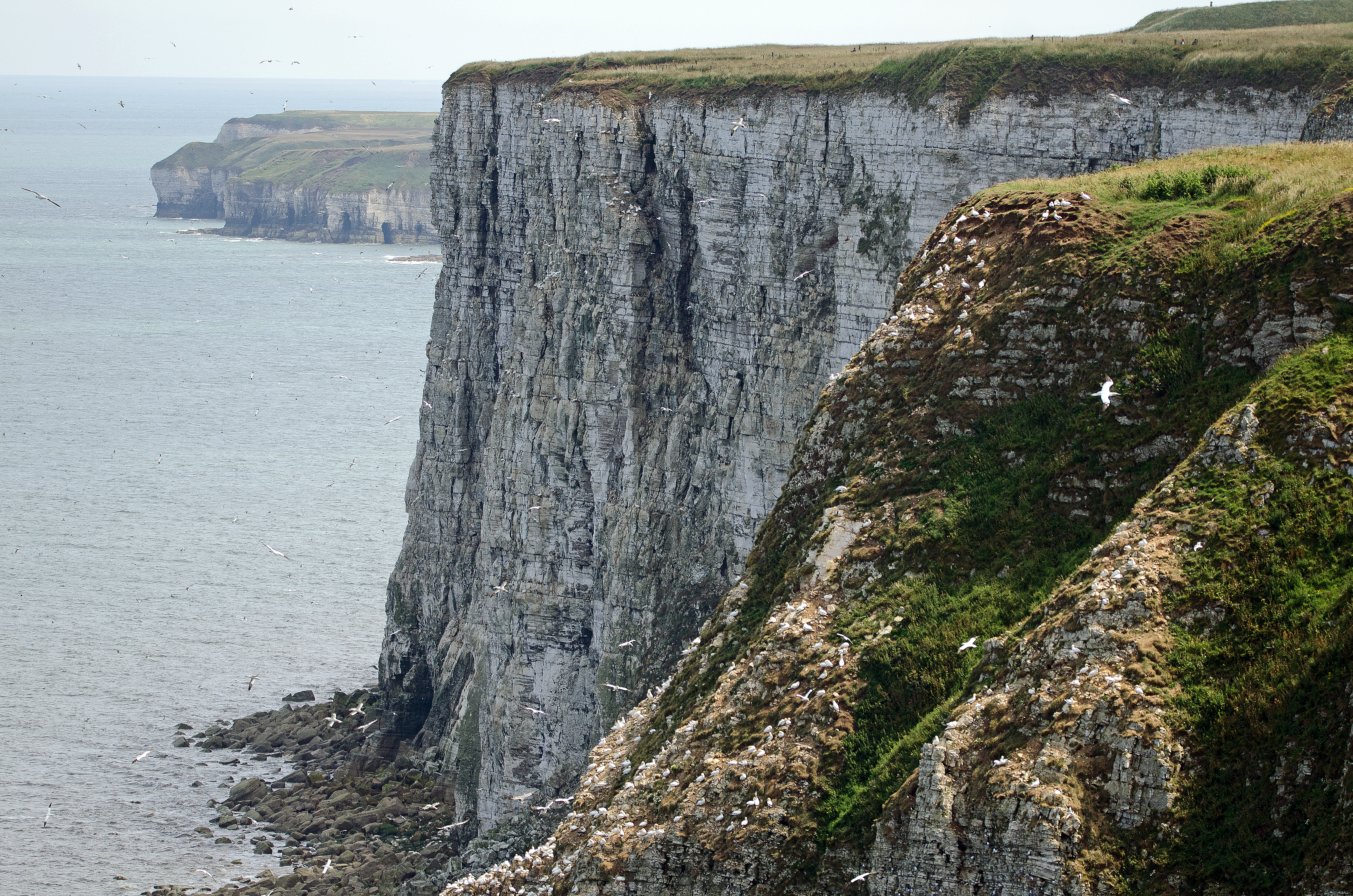 Guillemots and razorbills can be seen in the harbour at Scarborough after the end of the breeding season, from the end of July onwards, each year. At least 112,000 guillemots and 45,000 razorbills (2022 figures) nest on nearby Flamborough Head and Bempton Cliffs, along with more than 13,000 pairs of gannets. The birds, together with their newly fledged young disperse to coastal waters in the winter. A few decide to enter the sheltered waters of Scarborough harbour and stay there for a while.