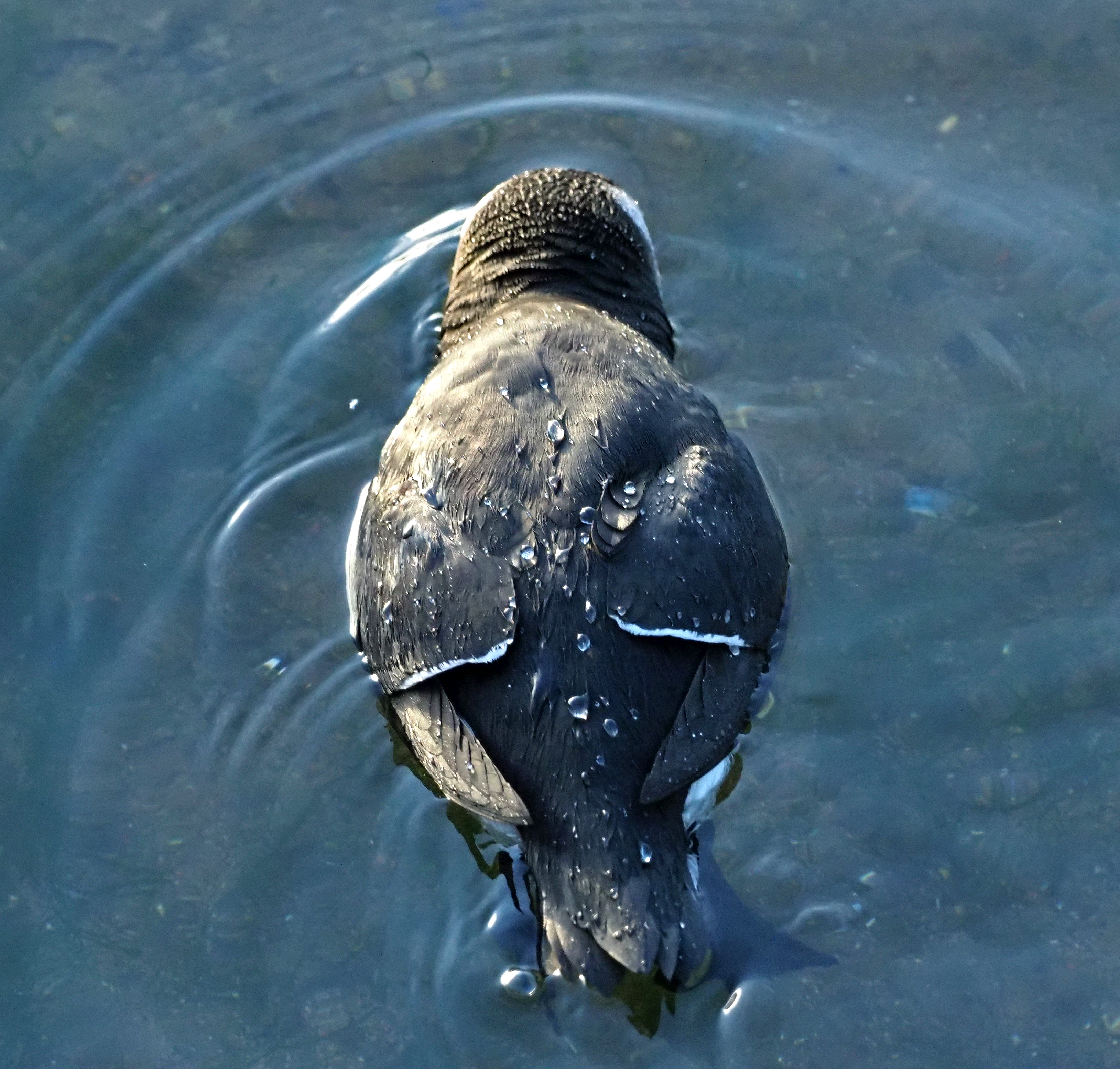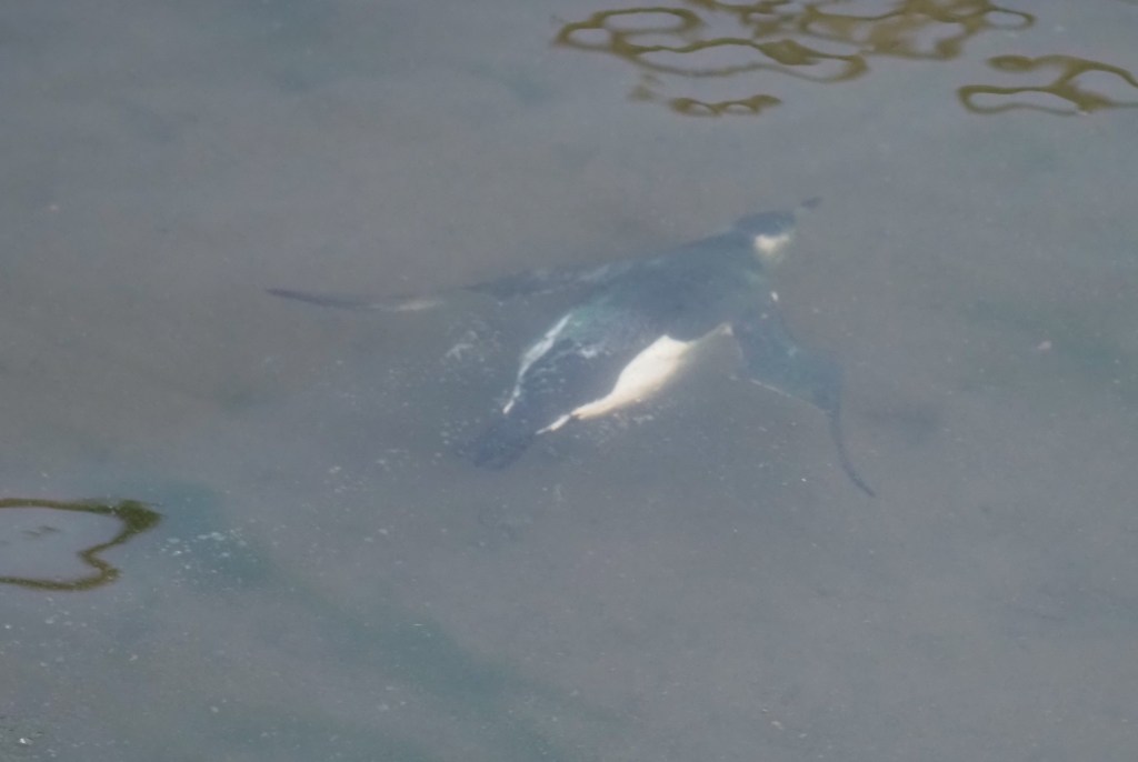 Watching these birds in the harbour, it is possible to see how they swim underwater in pursuit of fish. Something that would not be easy in the sea. They spend quite a lot of their time peering downwards into the water looking for fish (below). Often called snorkelling behaviour!