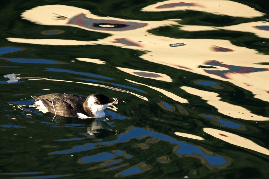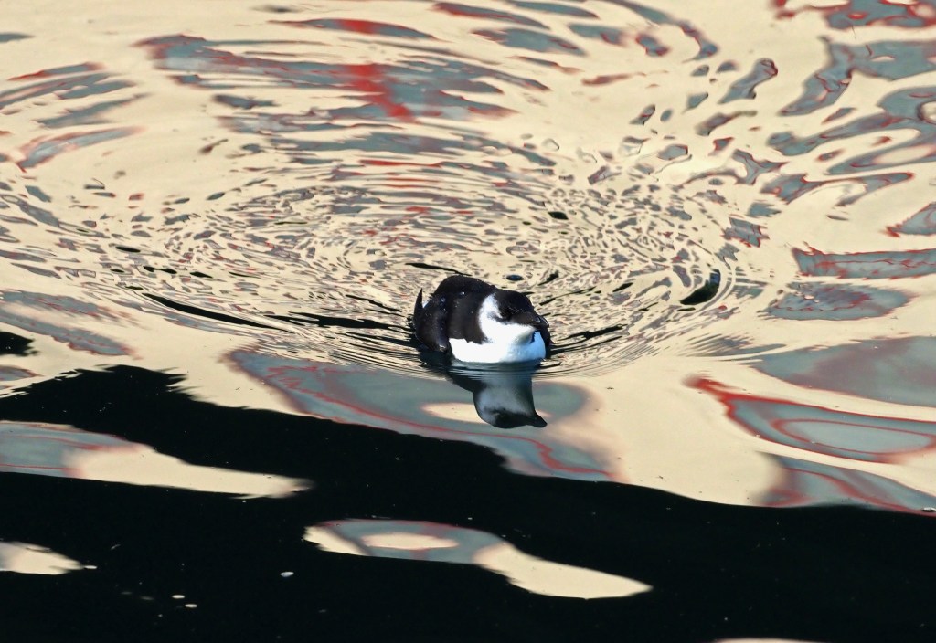 The presence of the auks in the harbour means that they are relatively easy to photograph, and sometimes made nice patterns in the water towards sunset.