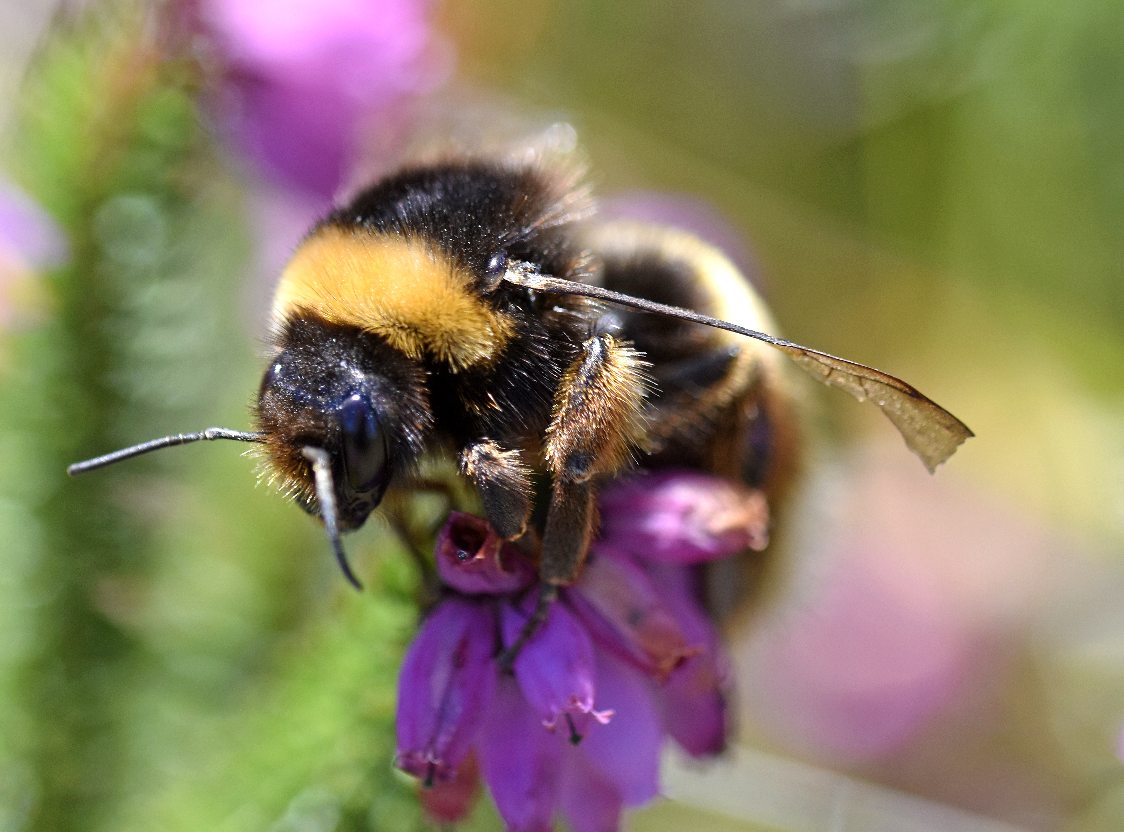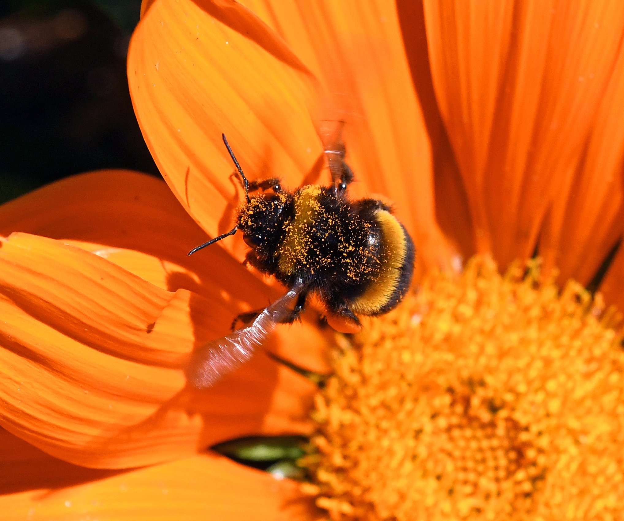 In a study of Canadian bumblebees, Bombus spp., Danusha Foster and Ralph Cartar of the University of Calgary, found that the frequency of collisions which occur whilst bees are out foraging, are uniquely associated with the loss of wing area. They found that wings collide with vegetation relatively often – roughly once every second in some cases! – particularly when the bees are manoeuvring within vegetation. Collisions also occur when a bee hits its wings on the inflorescence or flower on which it is foraging, during take-off and landing (below).