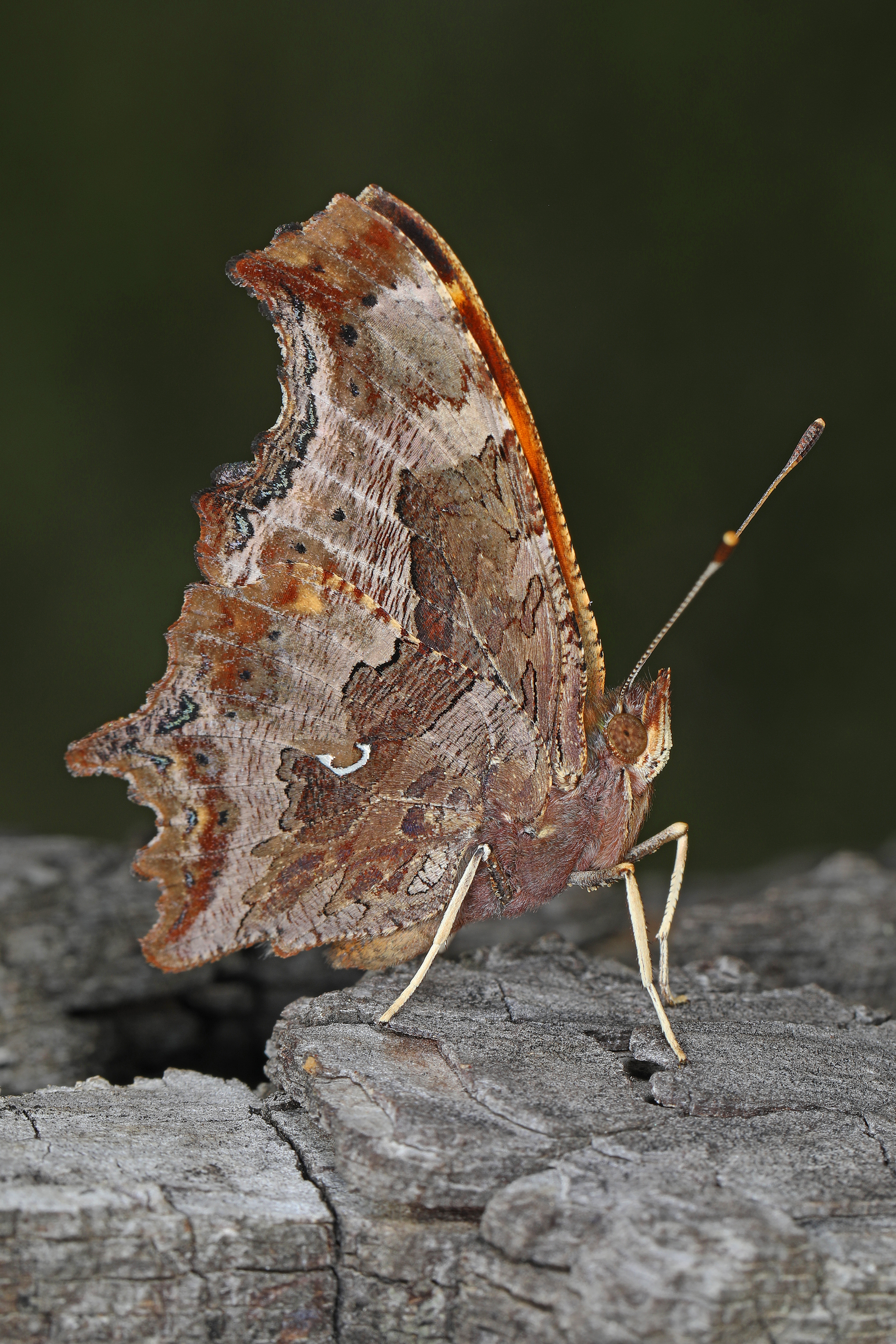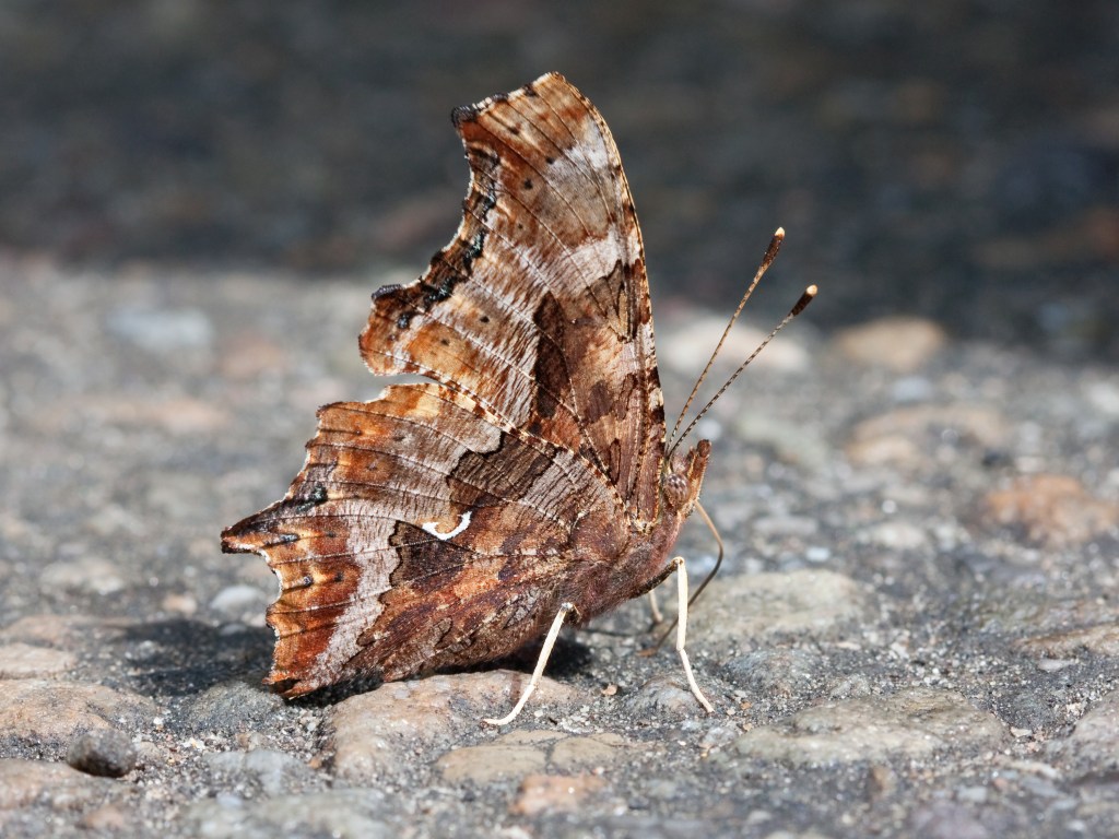 Polygonia species vary in terms of habitat preferences, but all  overwinter as adults and are often the first butterflies to emerge in the spring. They are also long-lived, or at least the darker overwintering broods are, living as long as 8-9 months before reproducing, sometimes up to a year, when winter temperatures are mild.
