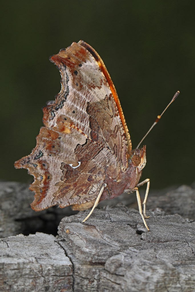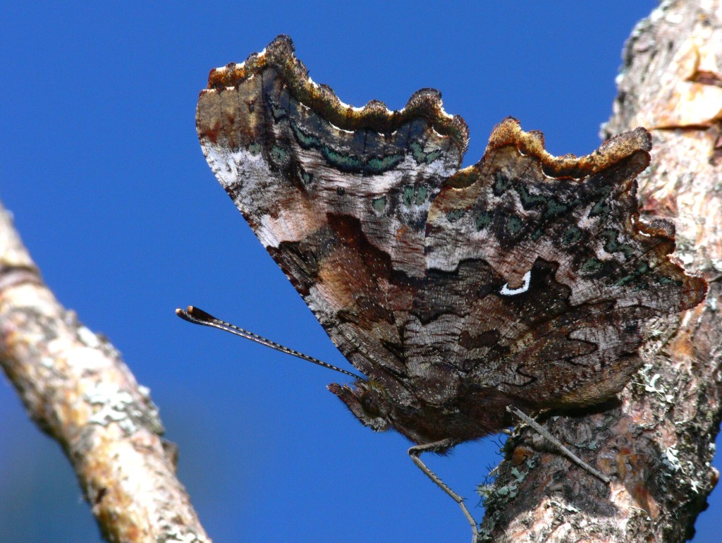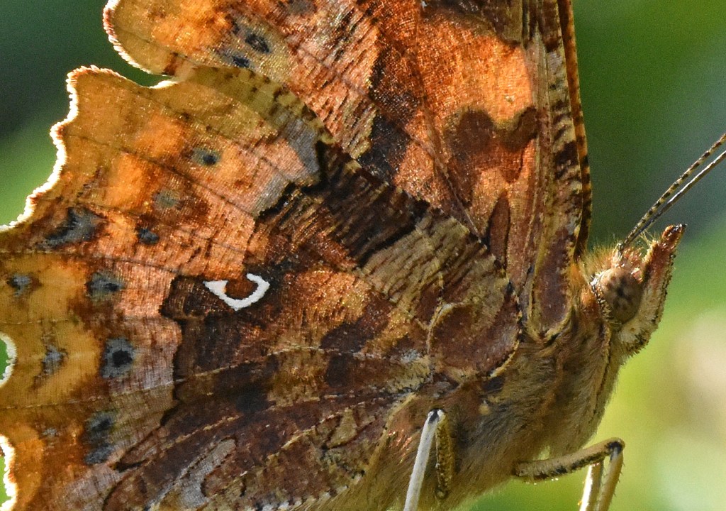There are several species within the genus, including Polygonia c-album, Polygonia c-aureum, and Polygonia egea, which exhibit seasonal polymorphism: i.e. a bright summer morph with light undersides and brighter uppersides, which we call, form hutchinsoni) and a dark overwintering morph – see previous blog here.