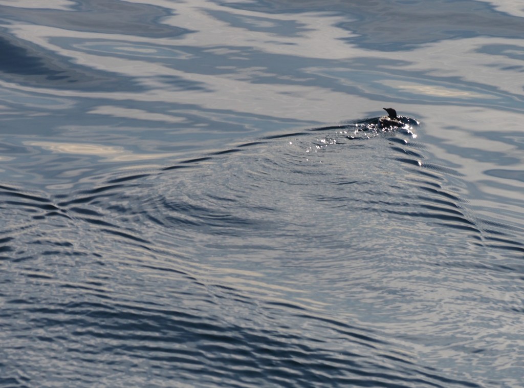 The sea was remarkably calm, and the birds made pleasing ripple patterns as they swam away from the passing ship.