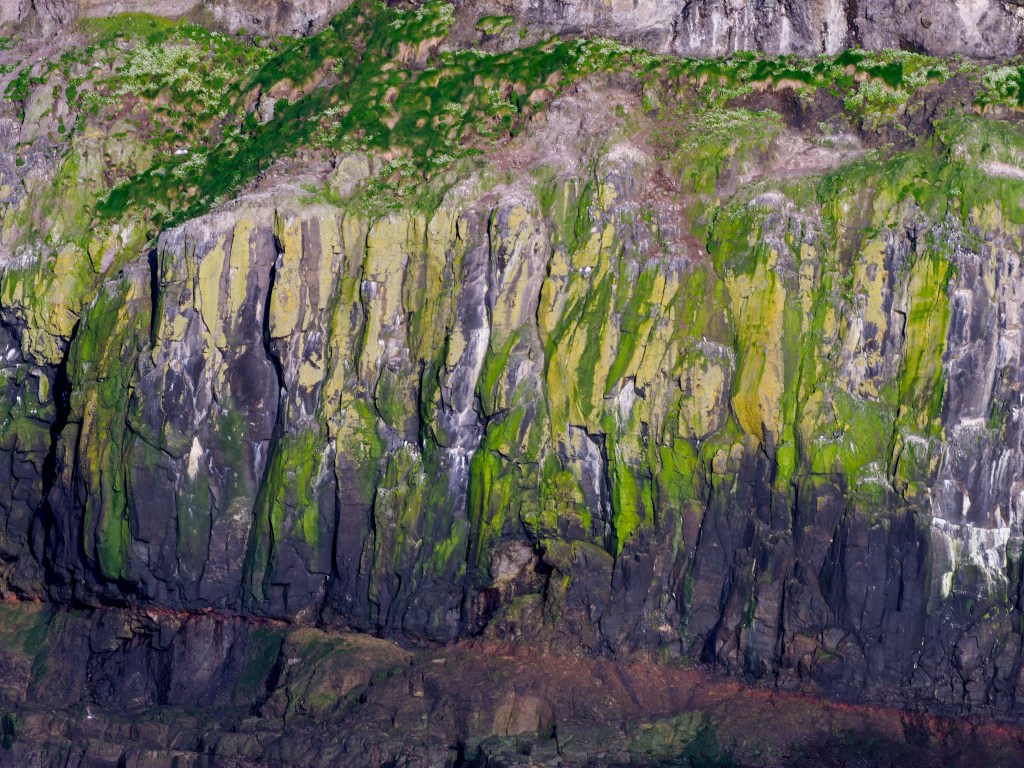 As we sailed closer to the island, I was taken by the beauty of the rocks, painted in different colours by the vegetation: grass, algae and lichen.