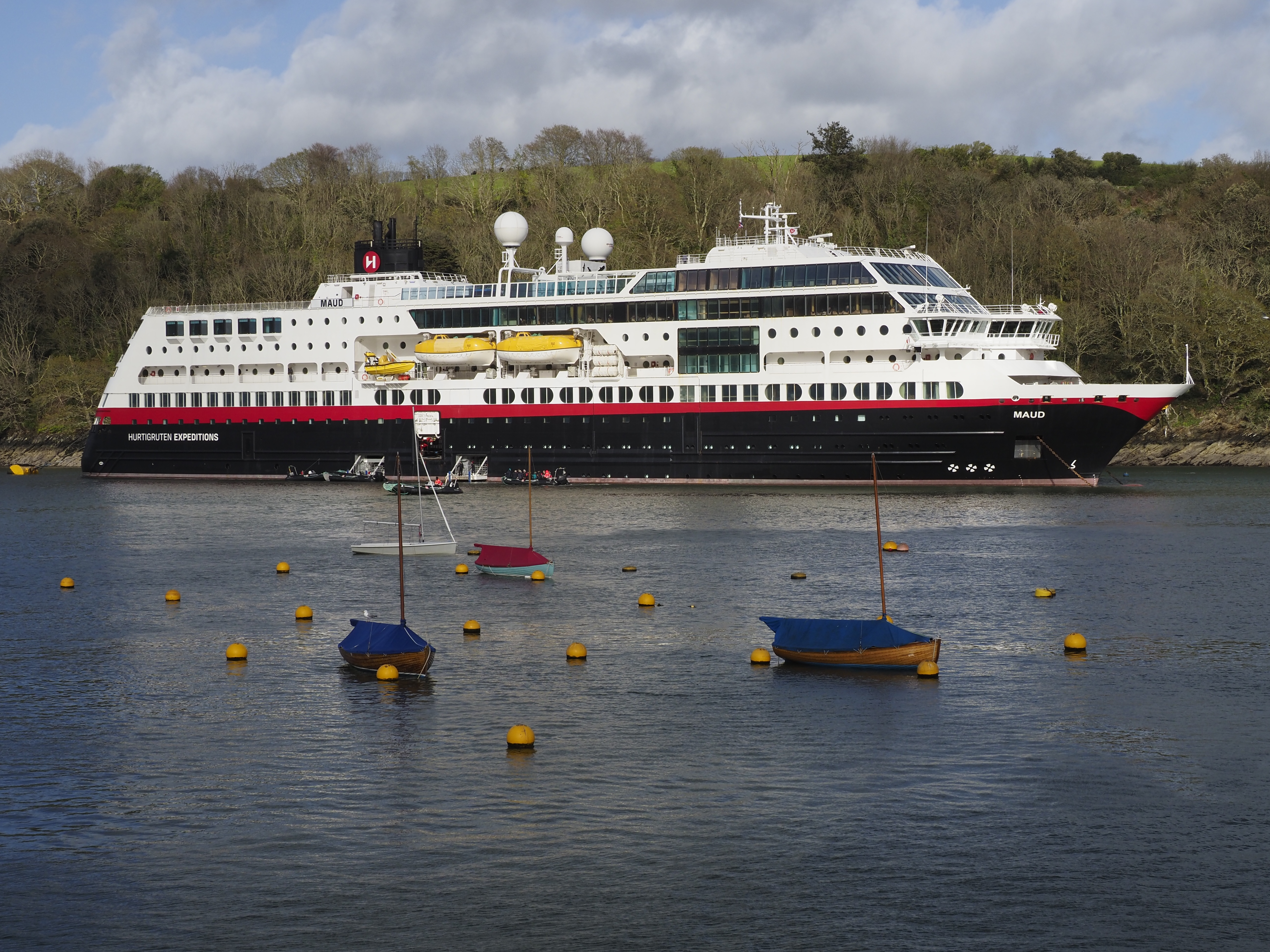 MS Maud anchored in Fowey, Cornwall on 15 April 2024