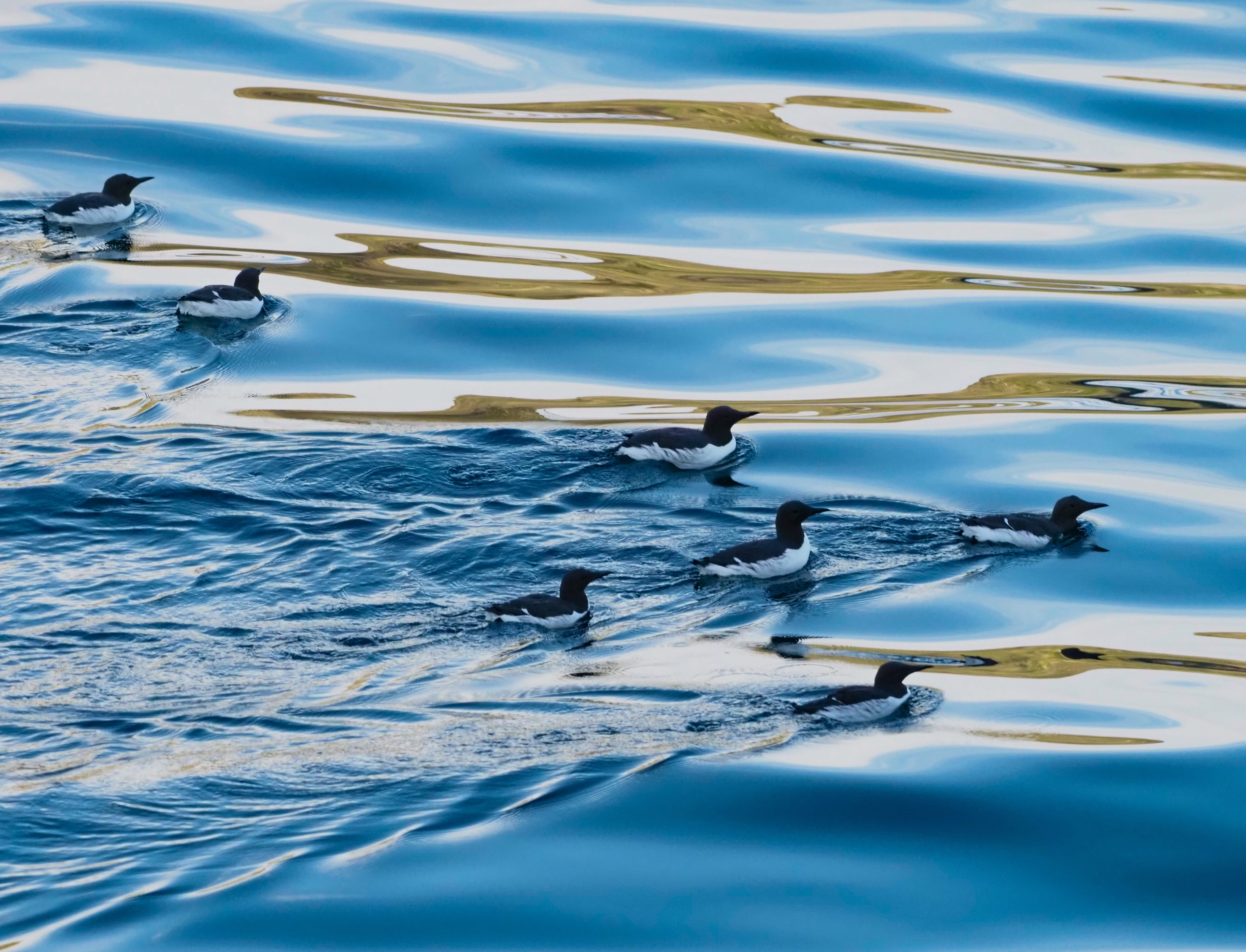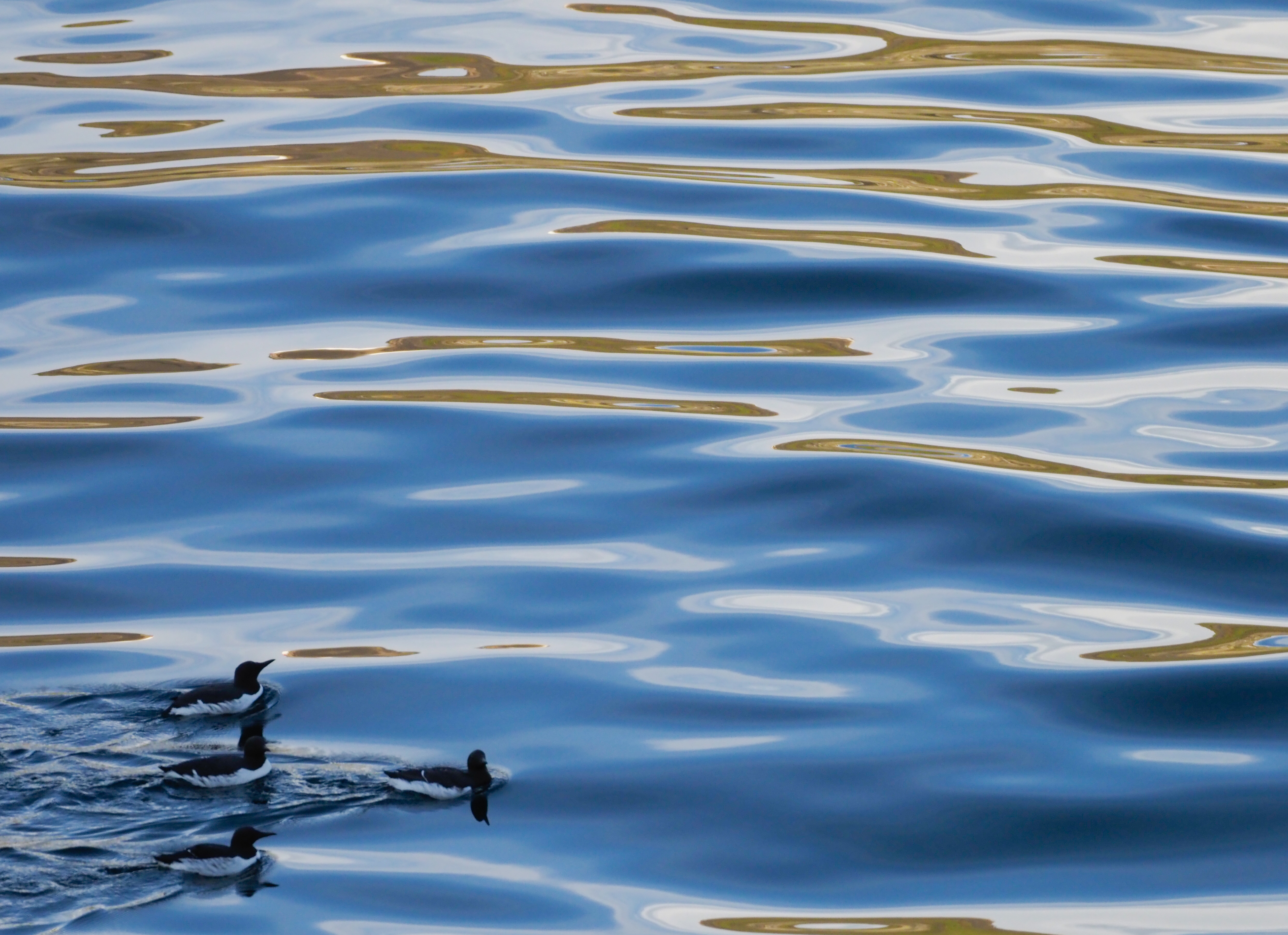 The sea was remarkably calm, and the birds made pleasing ripple patterns as they swam away from the passing ship.