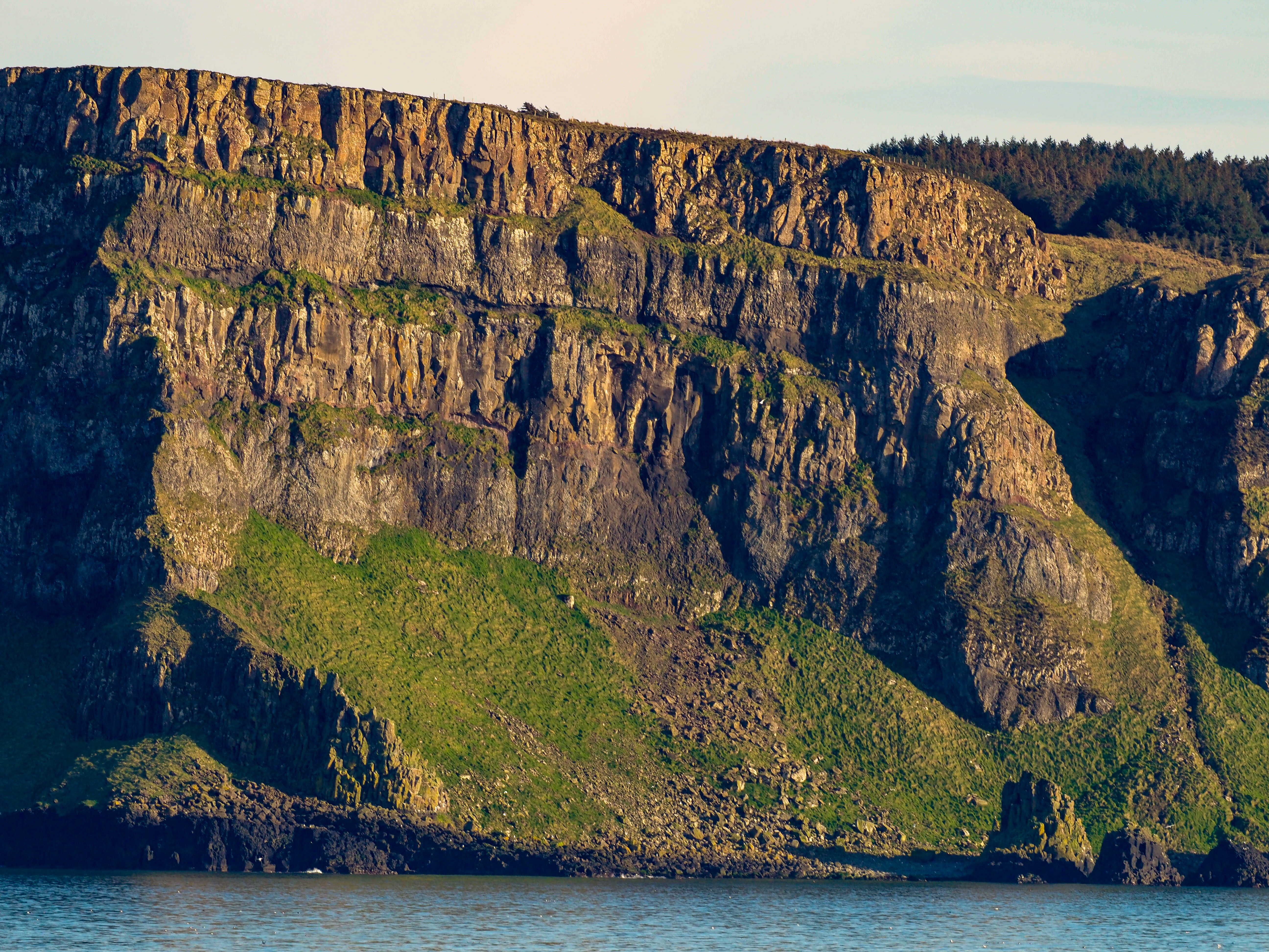 As we rounded the island, the sun lit the water with colourful reflections off the cliffs.
