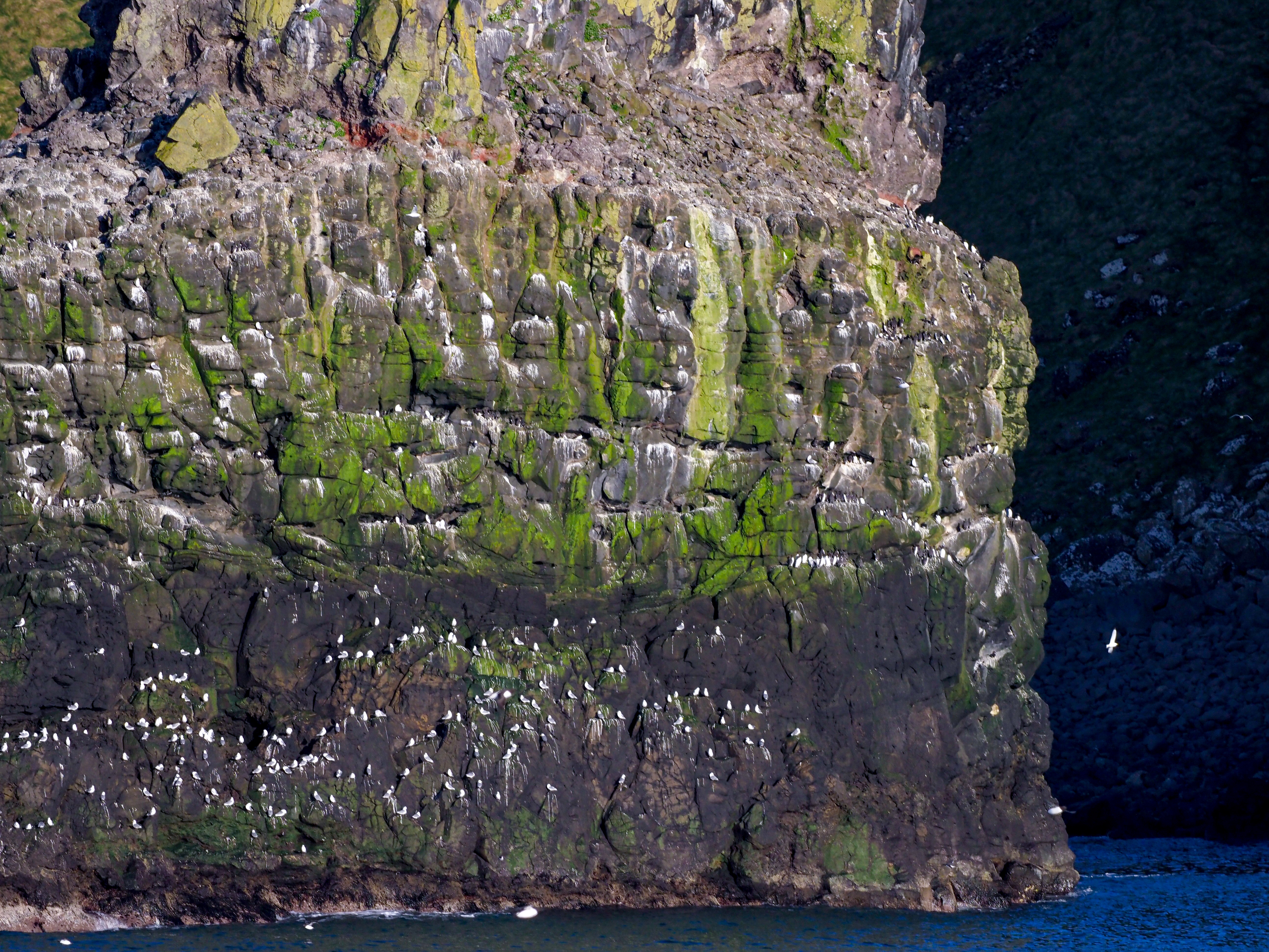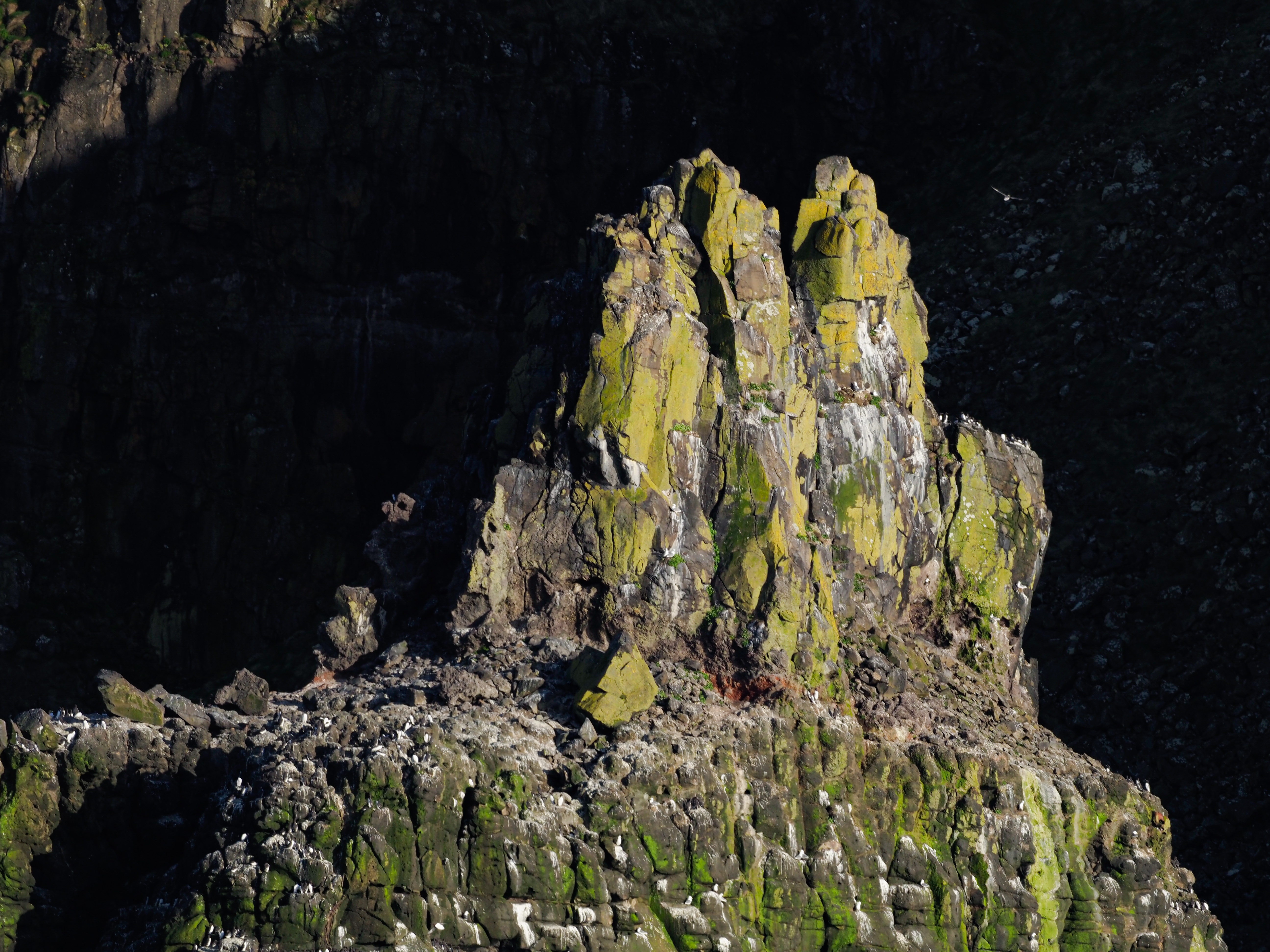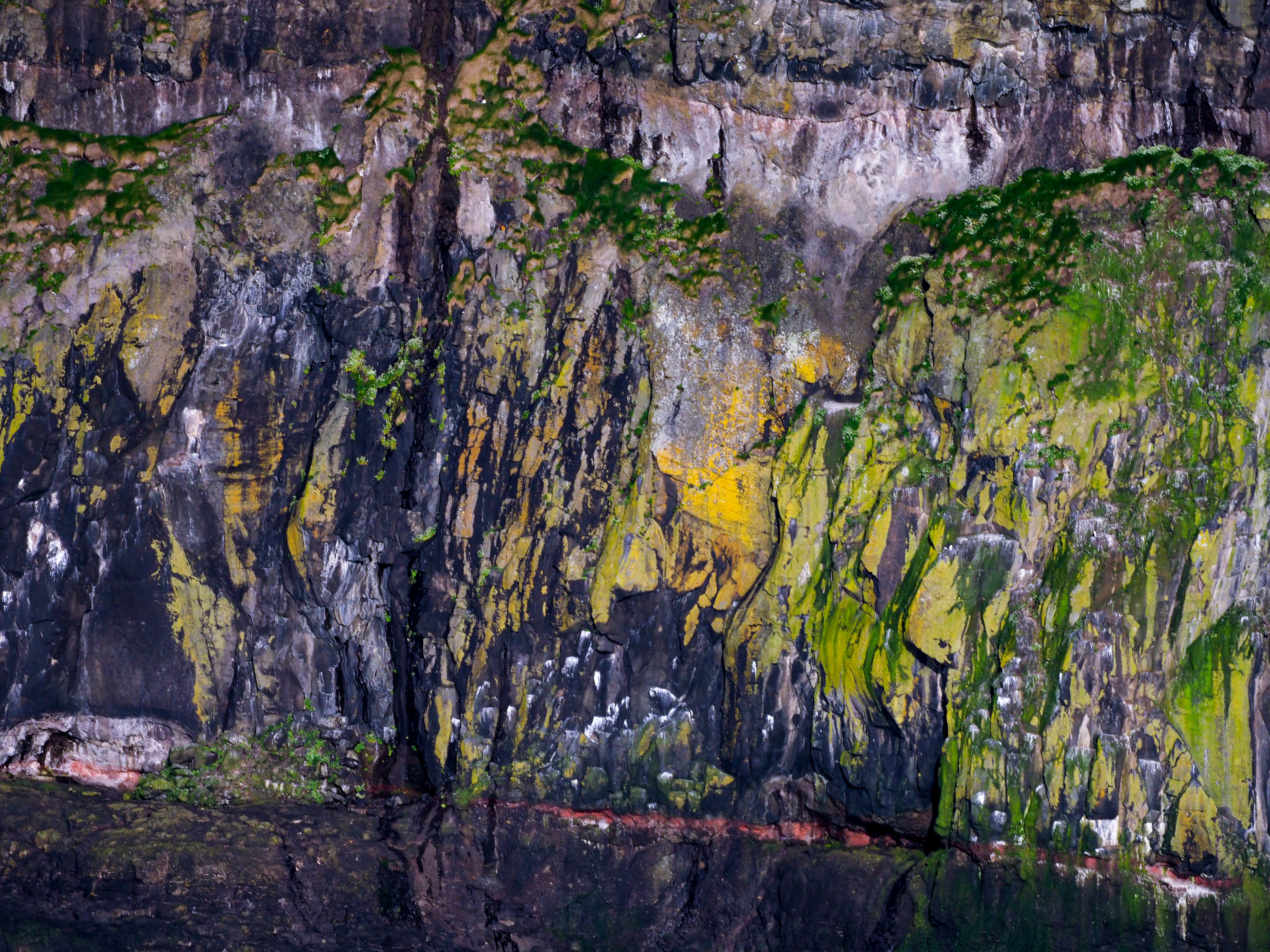 As we sailed closer to the island, I was taken by the beauty of the rocks, painted in different colours by the vegetation: grass, algae and lichen.