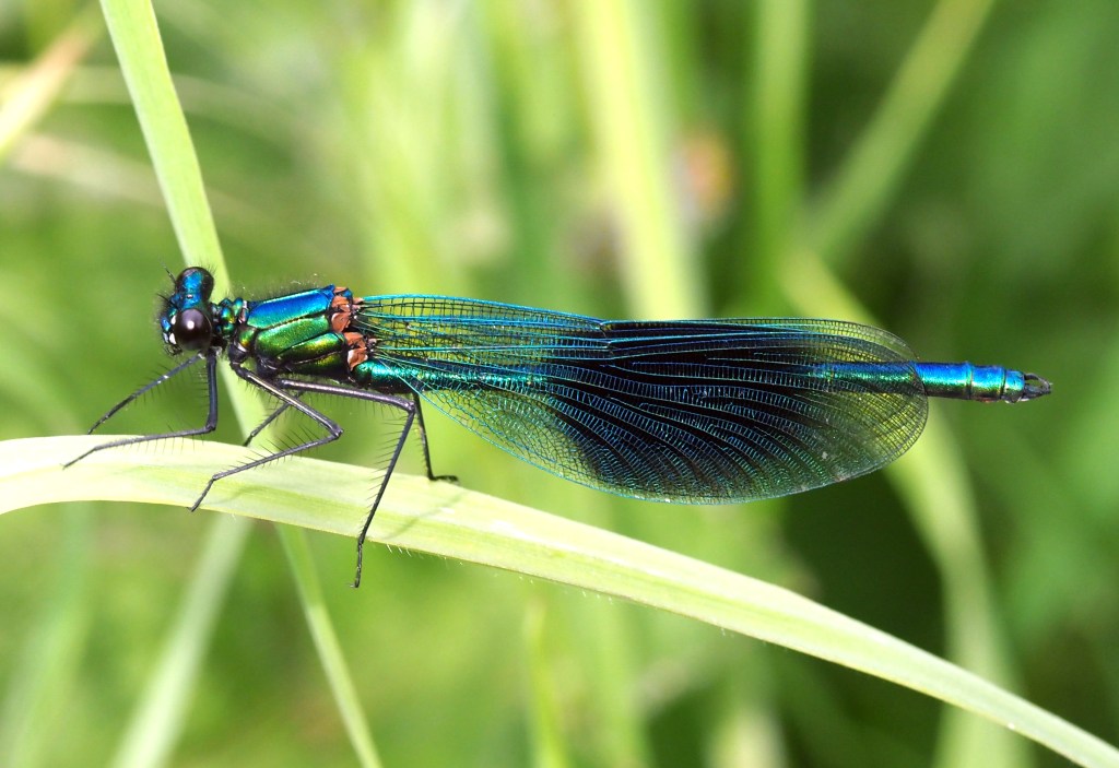 The banded demoiselle, Calopteryx splendens (Harris) (Odonata: Calopterygidae) is a common damselfly in England and Wales, and is gradually spreading north into Scotland. Researchers have discovered that it has one of the largest insect genomes sequenced to date.